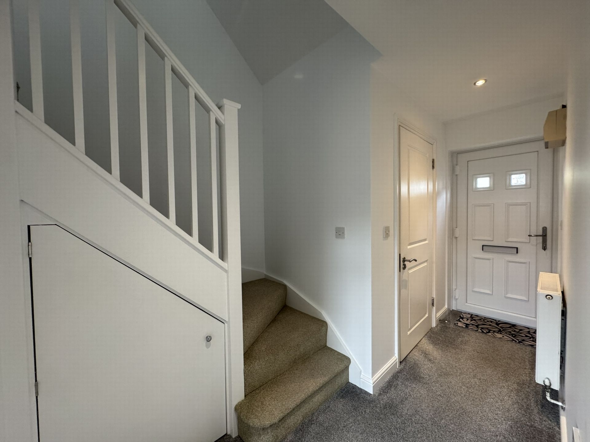 ENTRANCE HALL: Stairs to the first floor with storage cupboard under, doors to:
