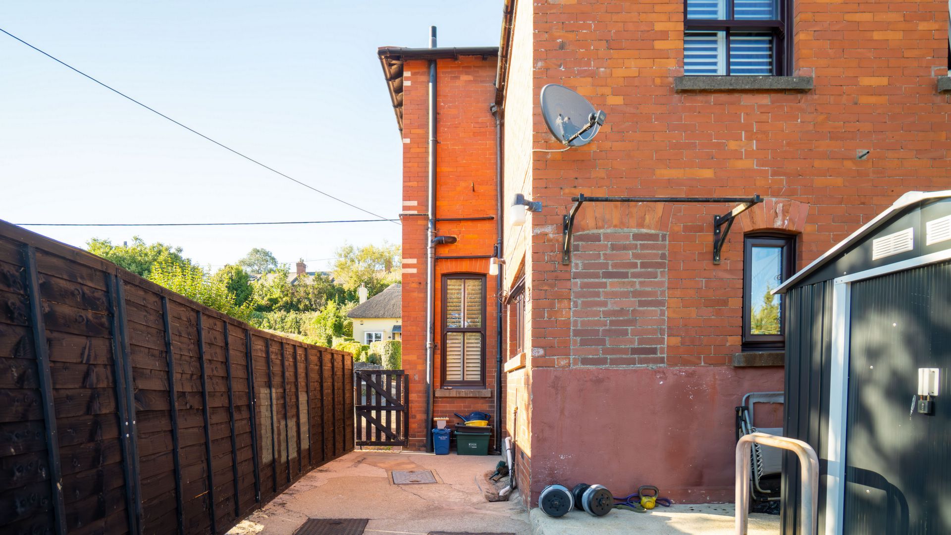 Upstairs are two bedrooms off the landing, including a principal bedroom with fitted wardrobes, and the second having a pleasant outlook to the rear. The family bathroom includes a shower over bath and an airing cupboard.