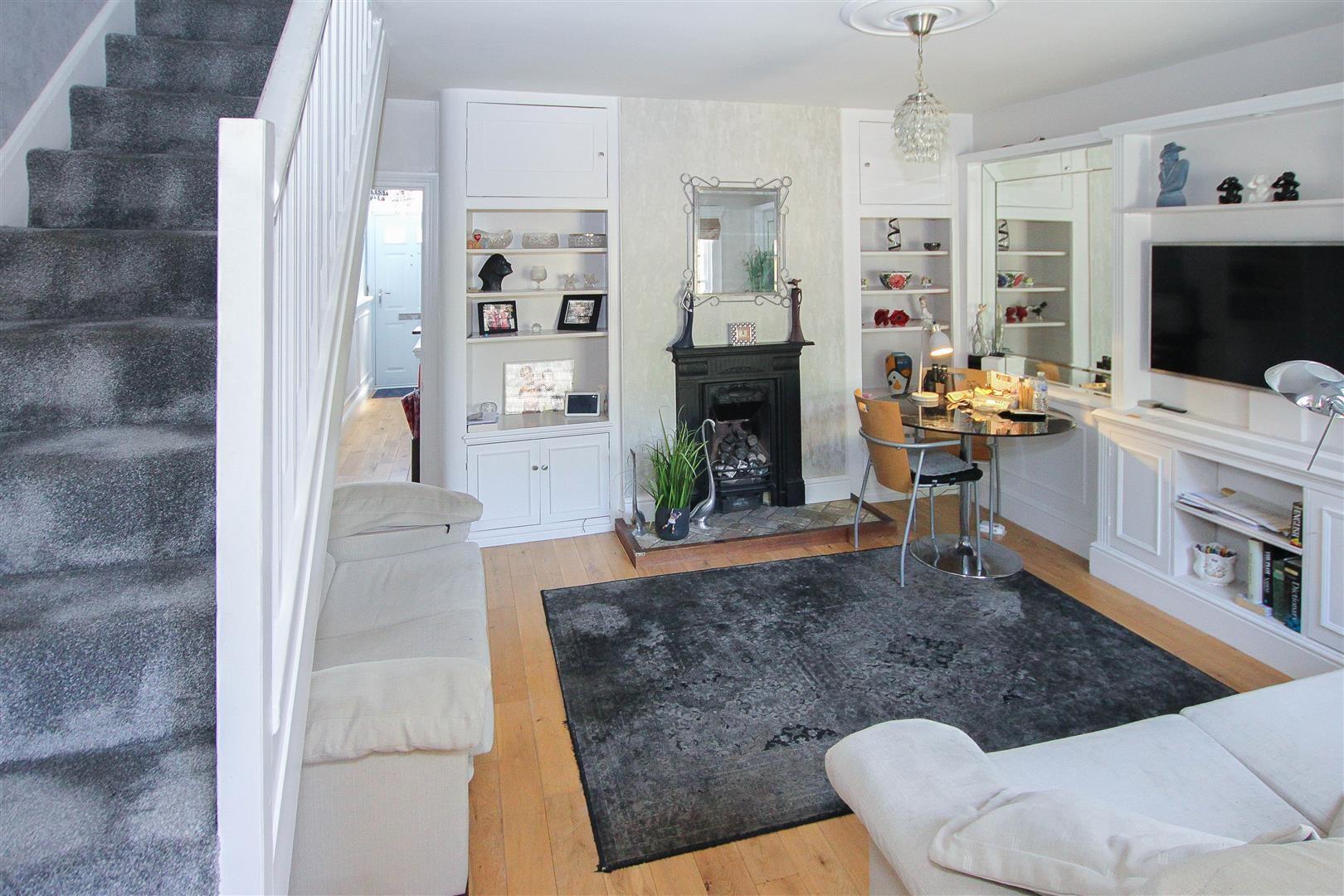 Steps up to the front door give access into the hallway which leads through to the living room and there is a further door from the hallway opening into a second reception room which has a window overlooking the front of the property and features a redbrick fireplace. The living room which is of good size has ample built-in storage and shelving and there are stairs rising to the first-floor level. The property has previously been extended to the rear to provide a large and bright kitchen of some 20'4 in length. The kitchen is fitted in a good range of cream wall and base units providing a good amount of storage and integrated appliances include double oven and gas hob with extractor above. There is a door from the kitchen giving access to the courtyard garden to the side.