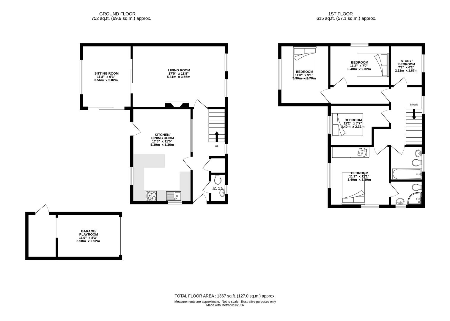 Detached Garage - 3.58m x 2.51m (11'9 x 8'3) - The garage has been converted into a games/playroom with the section to the rear being used for storage. Door to garden.