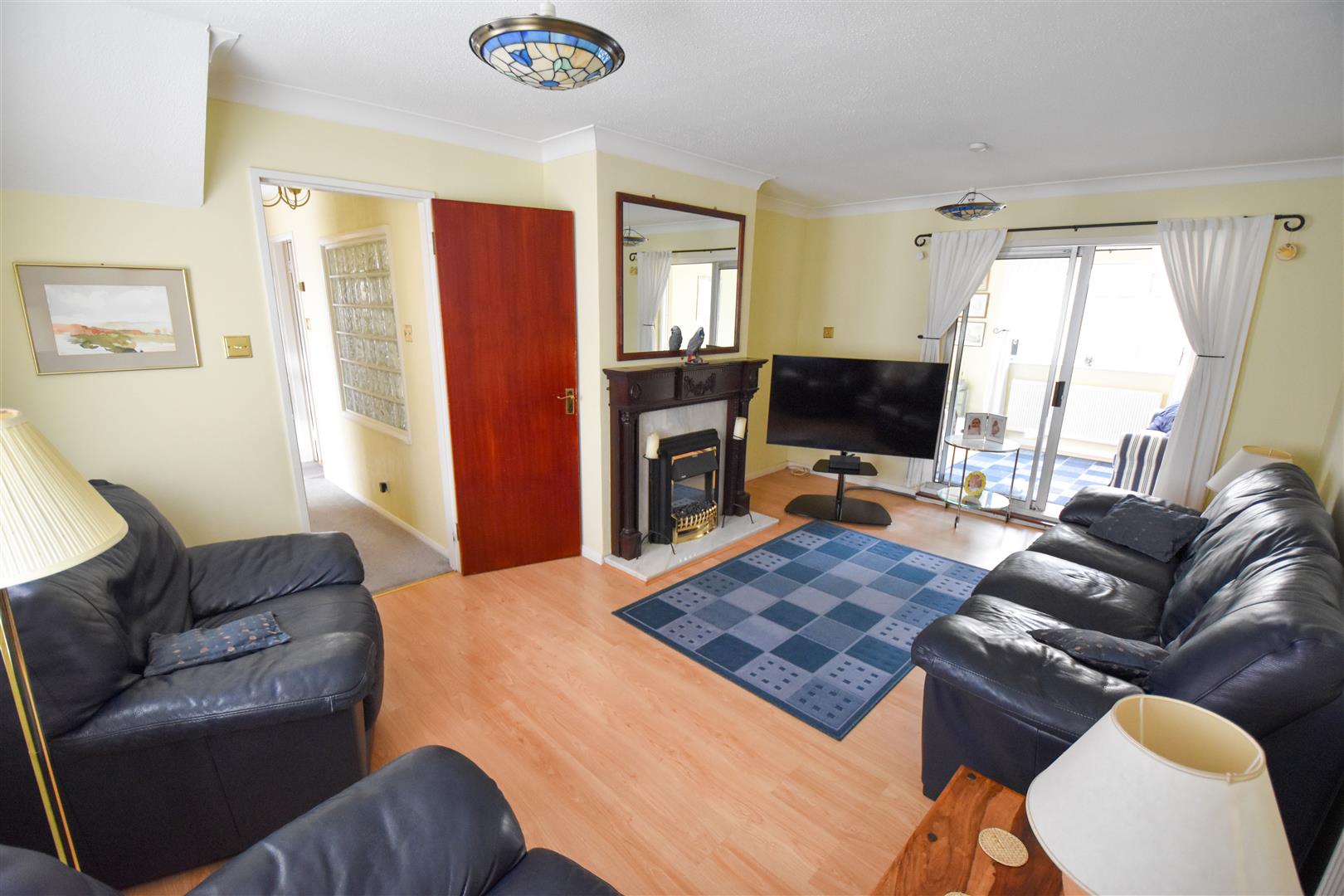 Living Room - 5.31m x 3.56m (17'5 x 11'8) - Two windows to front aspect. Laminate flooring and feature fireplace. Patio doors into :