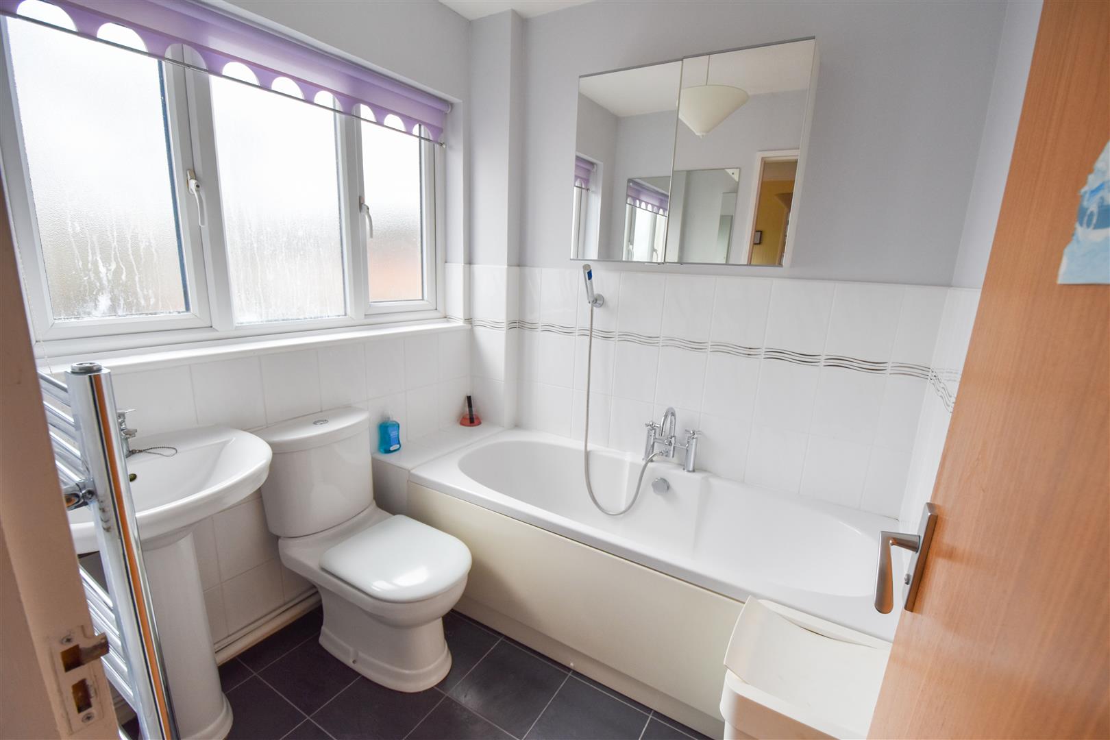 Family Bathroom - Fitted in a white suite, comprising of a panelled bath with hand held shower attachment, w.c. and wash hand basin.