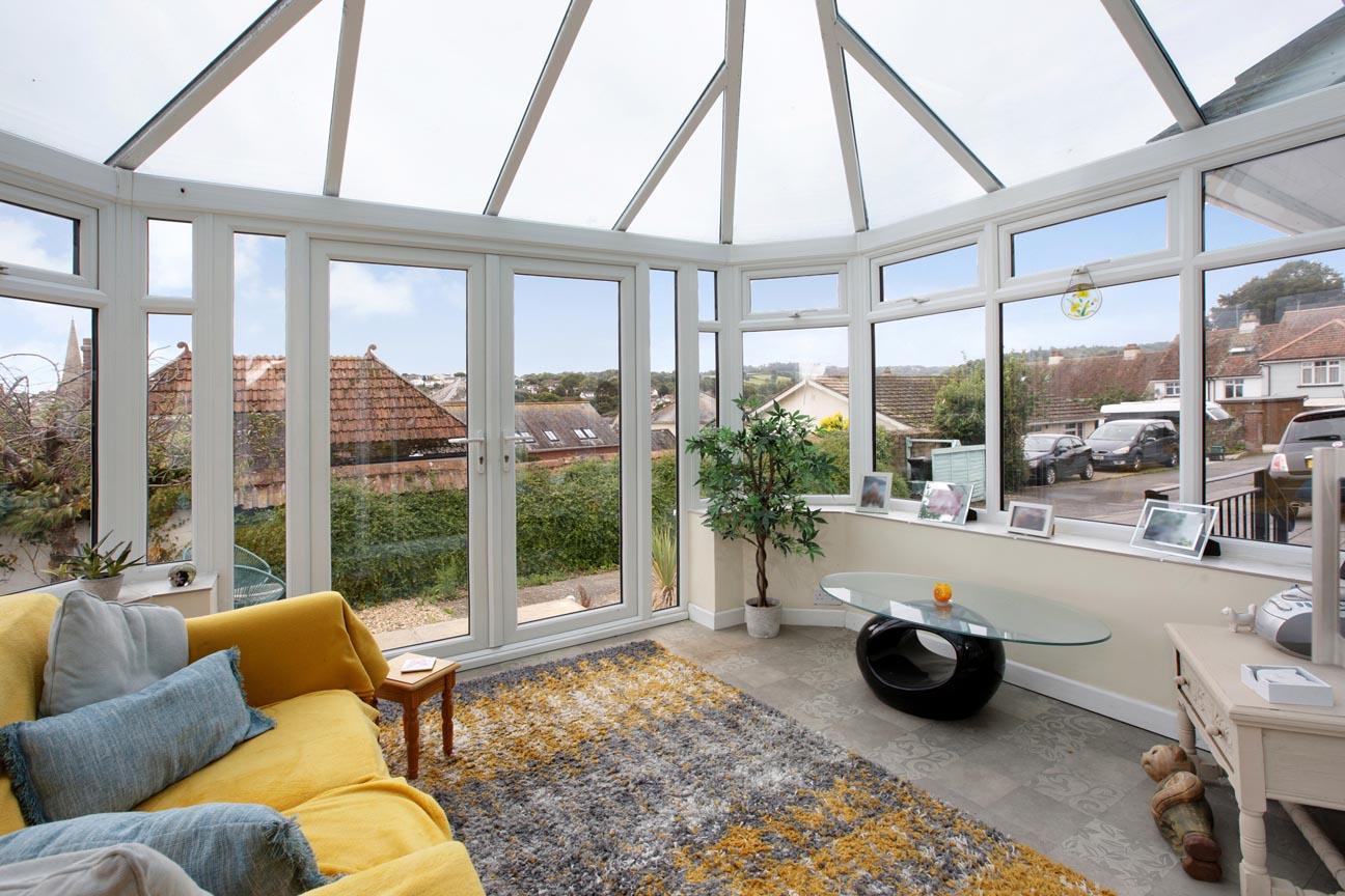 CONSERVATORY: With a southerly aspect and views over the town, uPVC double glazed windows and double doors lead to the front garden.