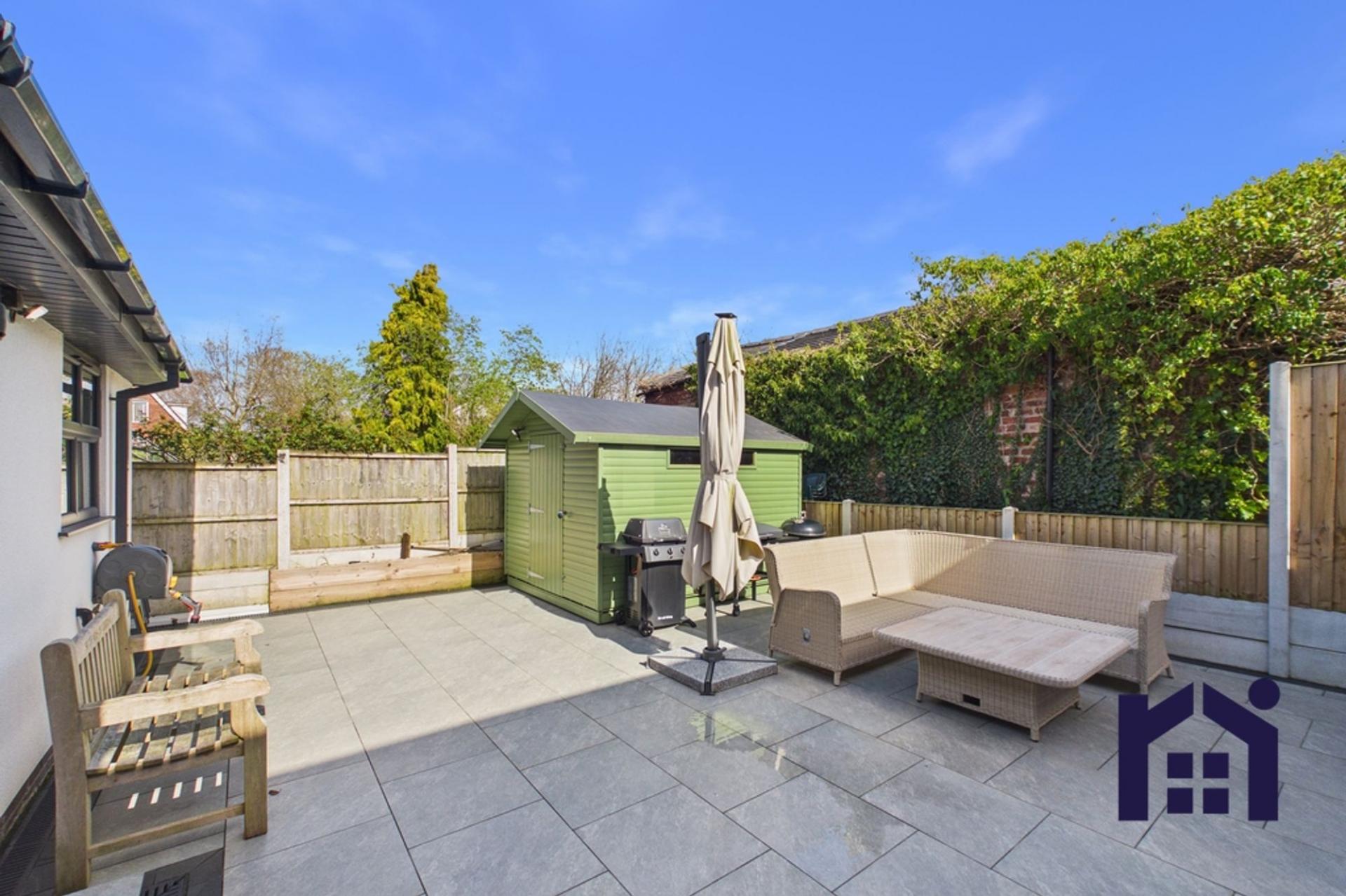 Step outside into the very private, low-maintenance Mediterranean-style garden, a fabulous space designed for relaxing and entertaining, which also benefits from a large shed with power and light for additional storage.