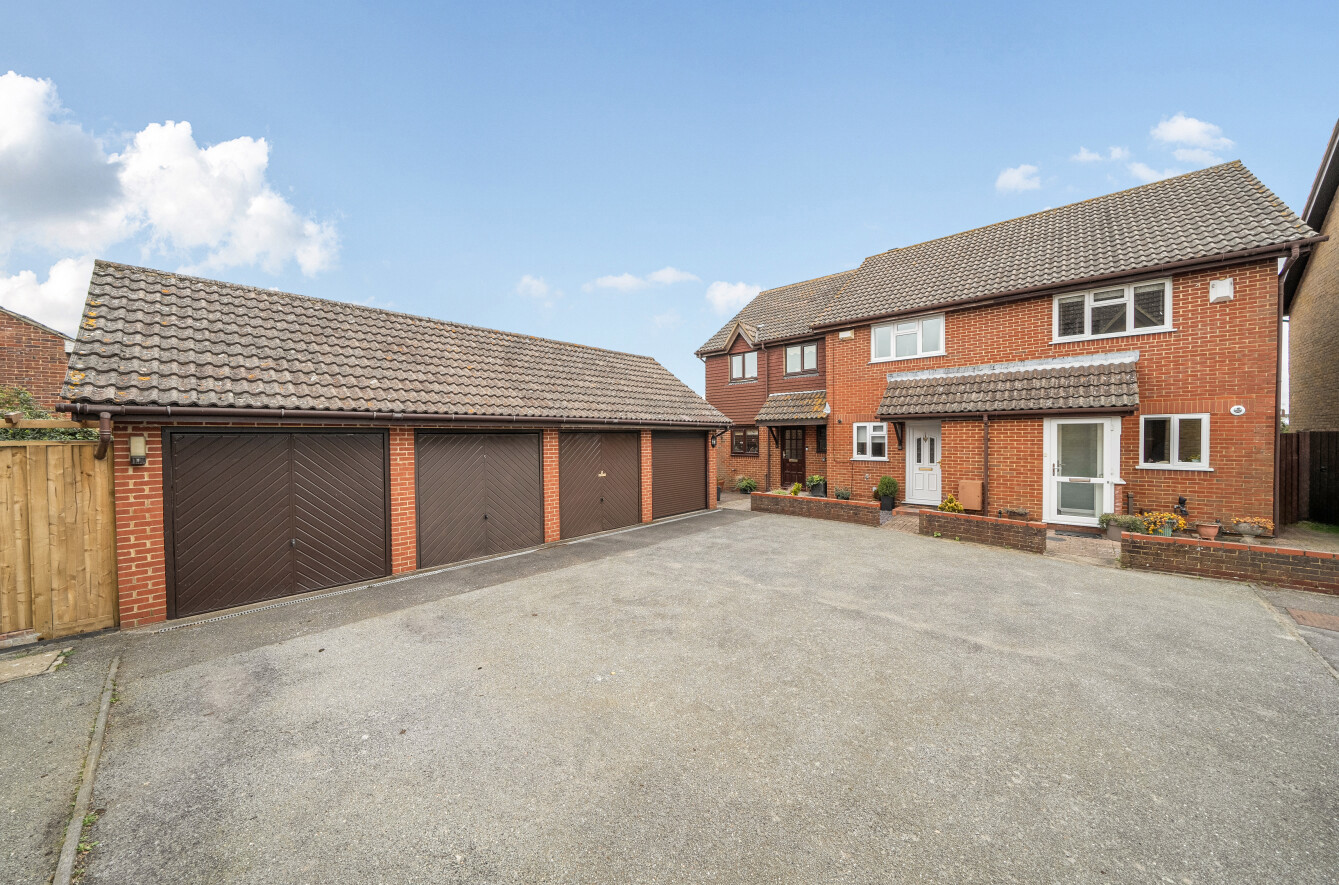 To the front of the property is an en-bloc single garage and parking space.