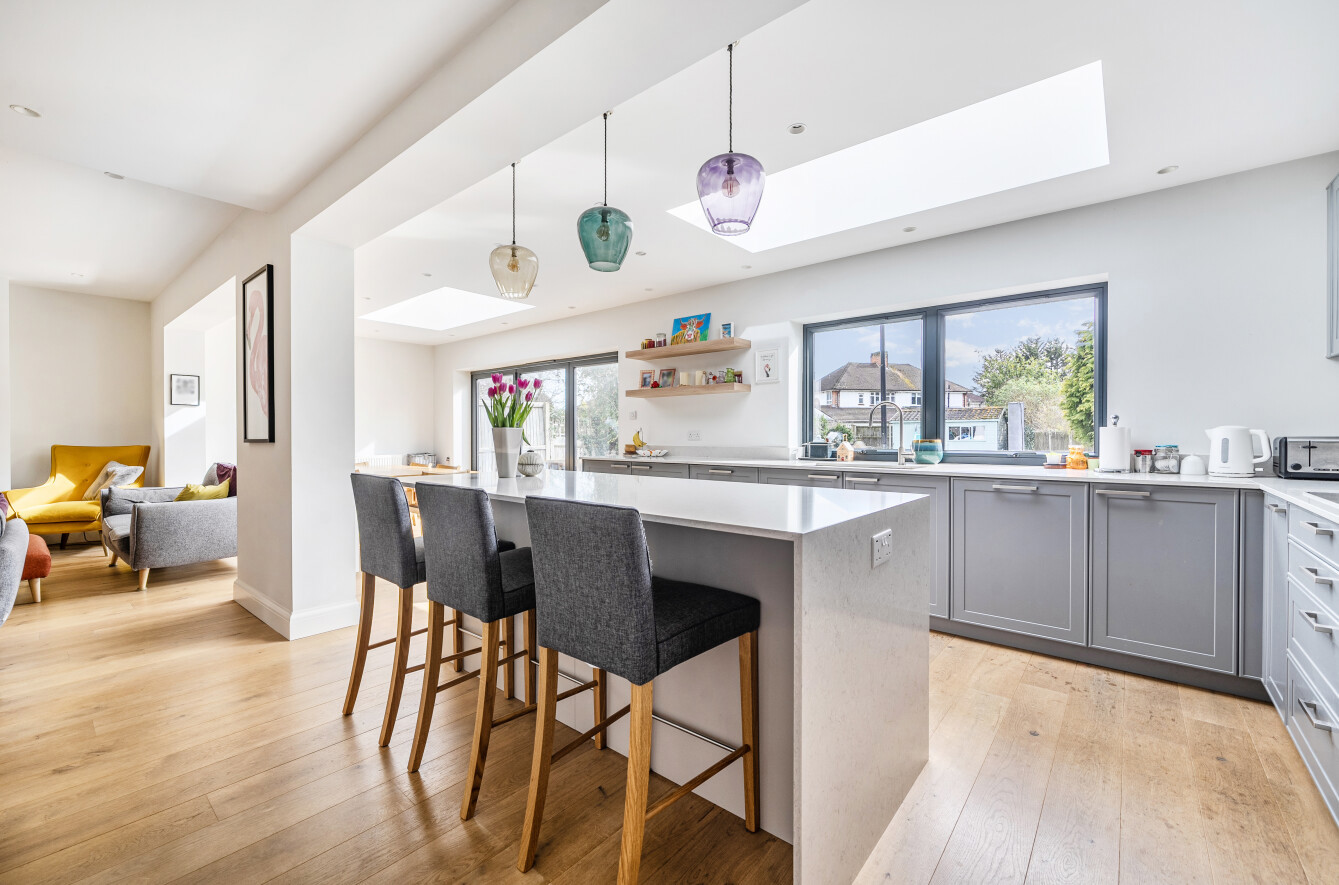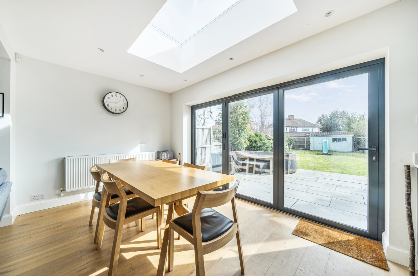 - 4 bed semi-detached house Petts Wood East Extended and beautifully presented Open-plan kitchen/dining/family area En-suite to main bedroom South facing rear garden