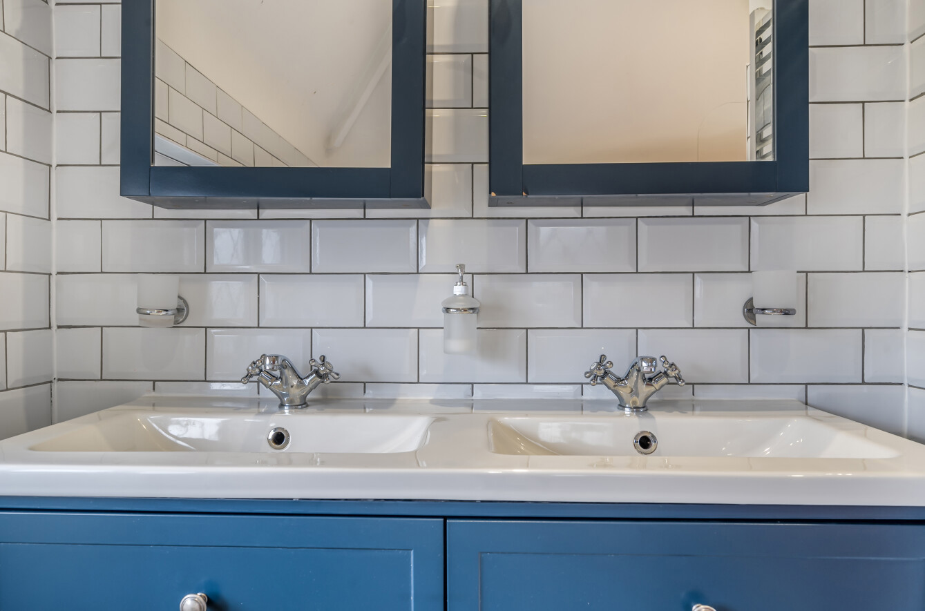 To the first floor are two double bedrooms with fitted wardrobes and a third good size single/small double bedroom, currently used as a study. There is also a newly refurbished family bathroom with his and her sinks.