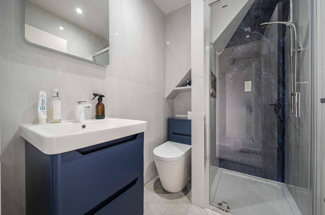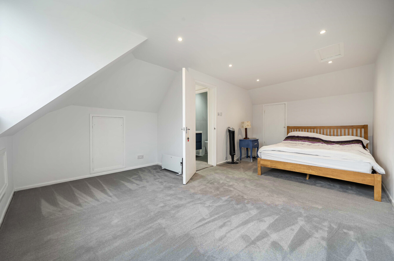 The top floor features a spacious double bedroom with excellent eaves storage and a sleek, modern shower room, providing an ideal private retreat.