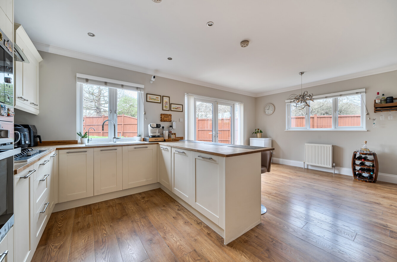 Outside, the home boasts secluded rear and side gardens with a large patio perfect for al fresco dining. An insulated outbuilding offers flexible use as a home office, studio or gym. To the front, there’s a spacious paved driveway providing ample parking for several vehicles.