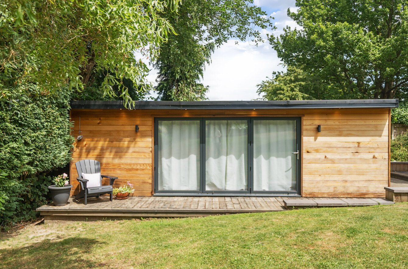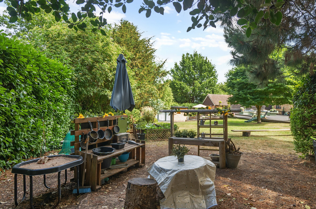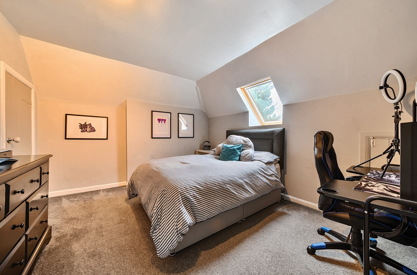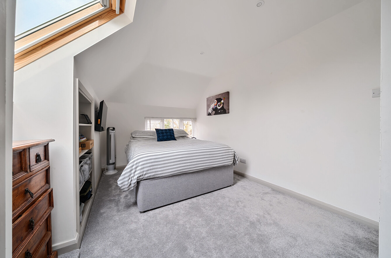 The stunning garden measures approximately 105' x 89'. It has a large decked seating area accessible from the kitchen making it ideal for al-fresco dining. The remainder is laid to lawn with a backdrop of mature trees and shrubs. Also in the garden is a timber summerhouse which is ideal for use as a home office, gym or teenagers den.