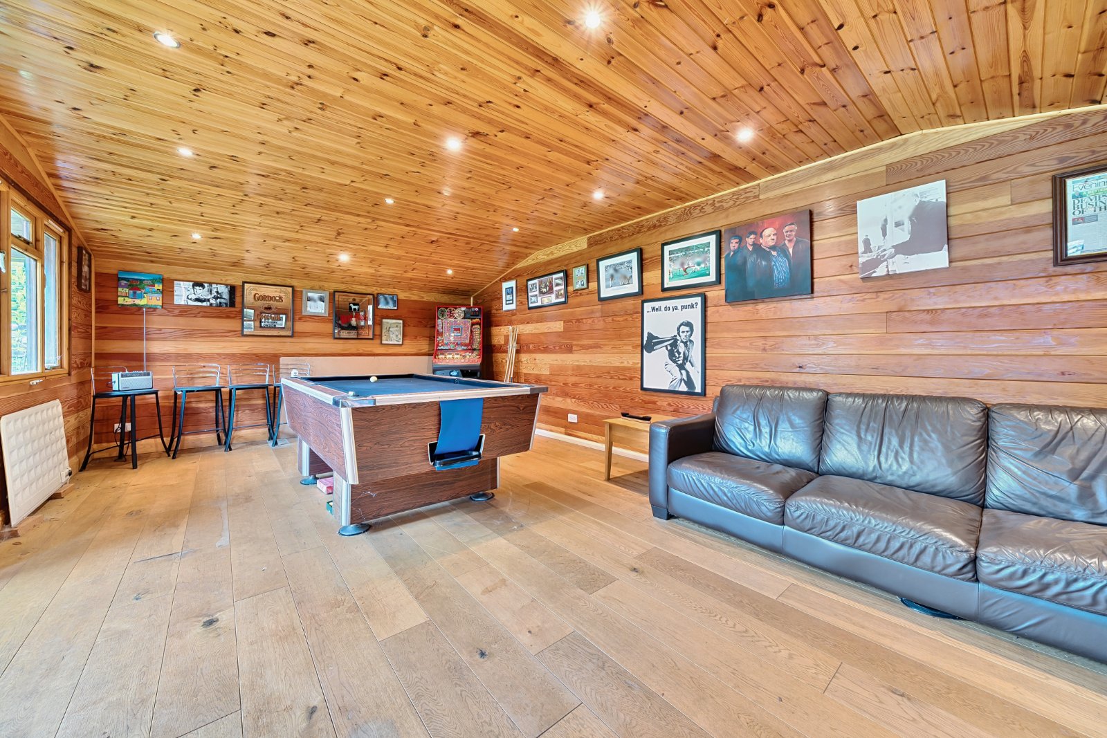 The secluded rear garden measures approximately 65' x 62' and is laid with artificial grass for ease of maintenance. Surrounded by flower and shrub borders plus mature trees creating a private space to sit and enjoy the outdoors. There is a covered decked seating area to the immediate rear of the property making an ideal area for al-fresco dining in the summer months. A wooden cabin with power and light is currently used as a games room and there is additional storage space to the side of the property.
