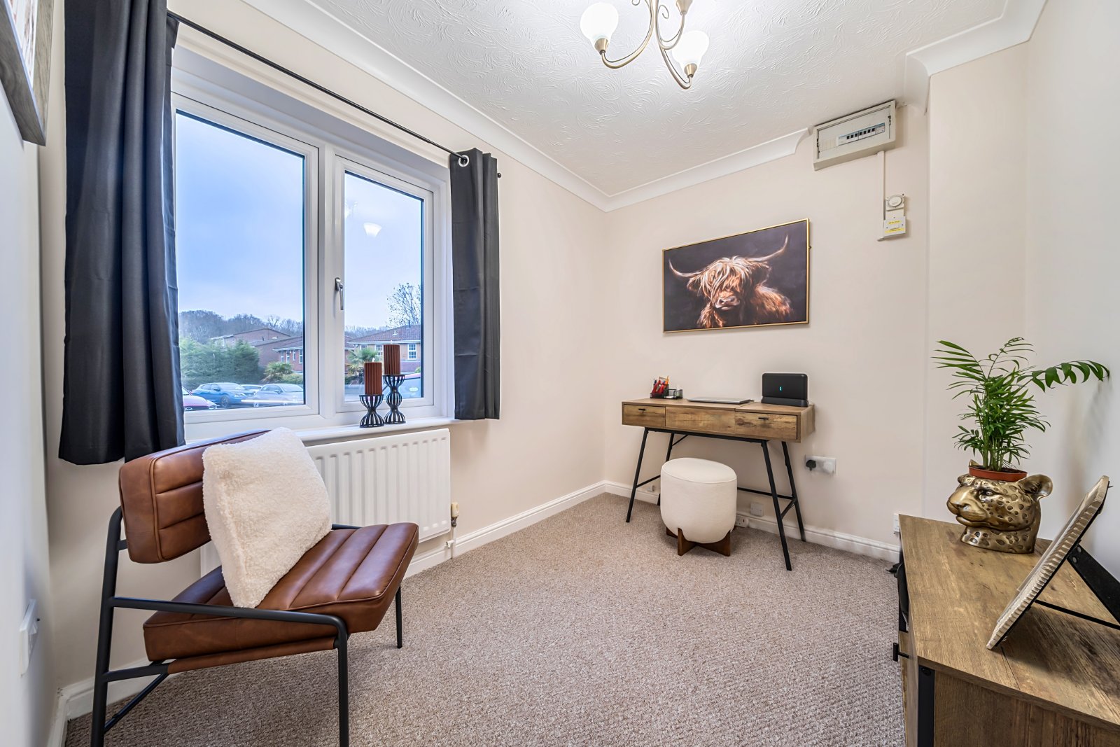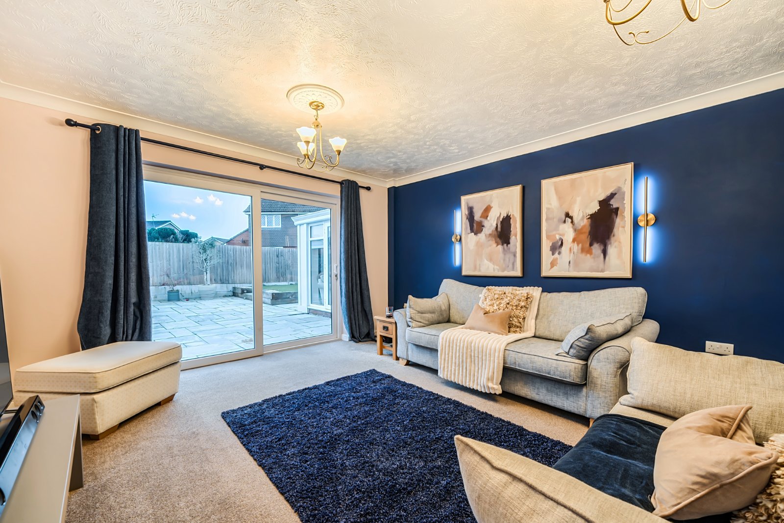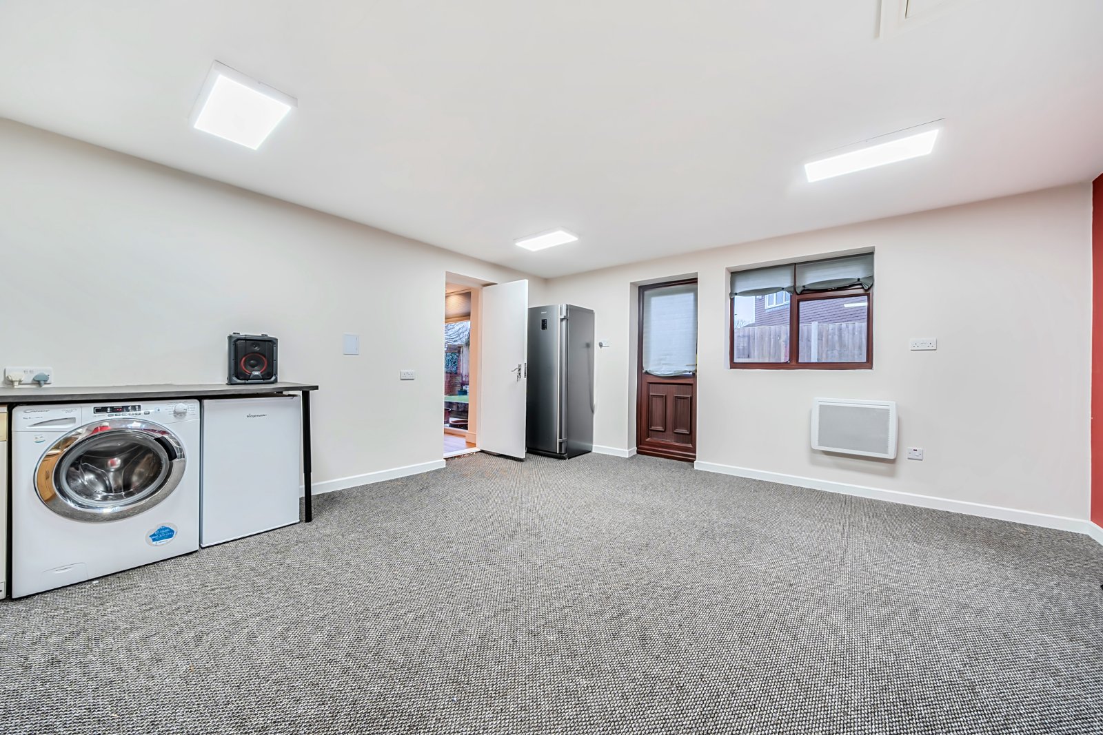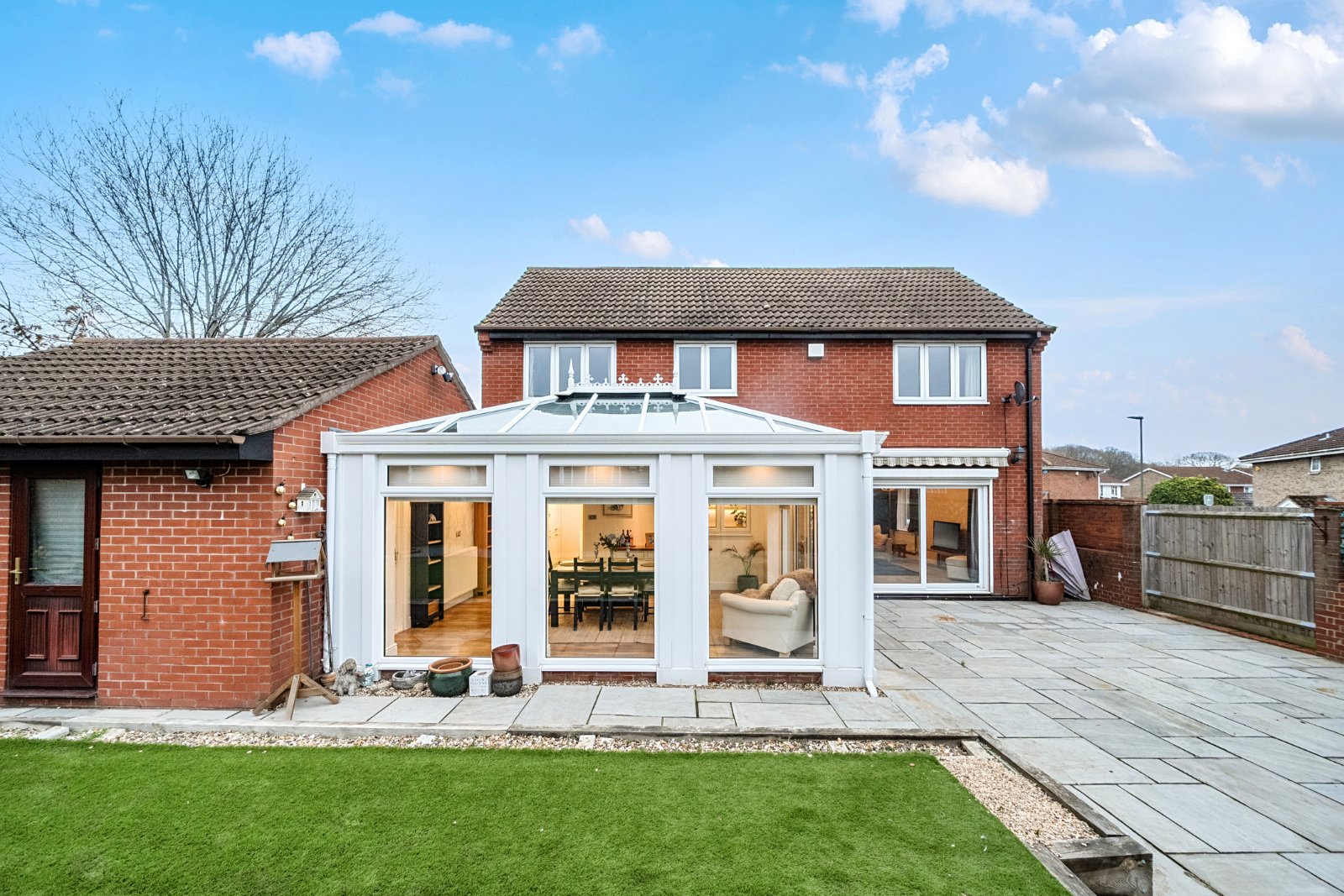 The low maintenance rear garden has a pleasant south westerly aspect with a large paved seating area and a raised section with artificial grass.