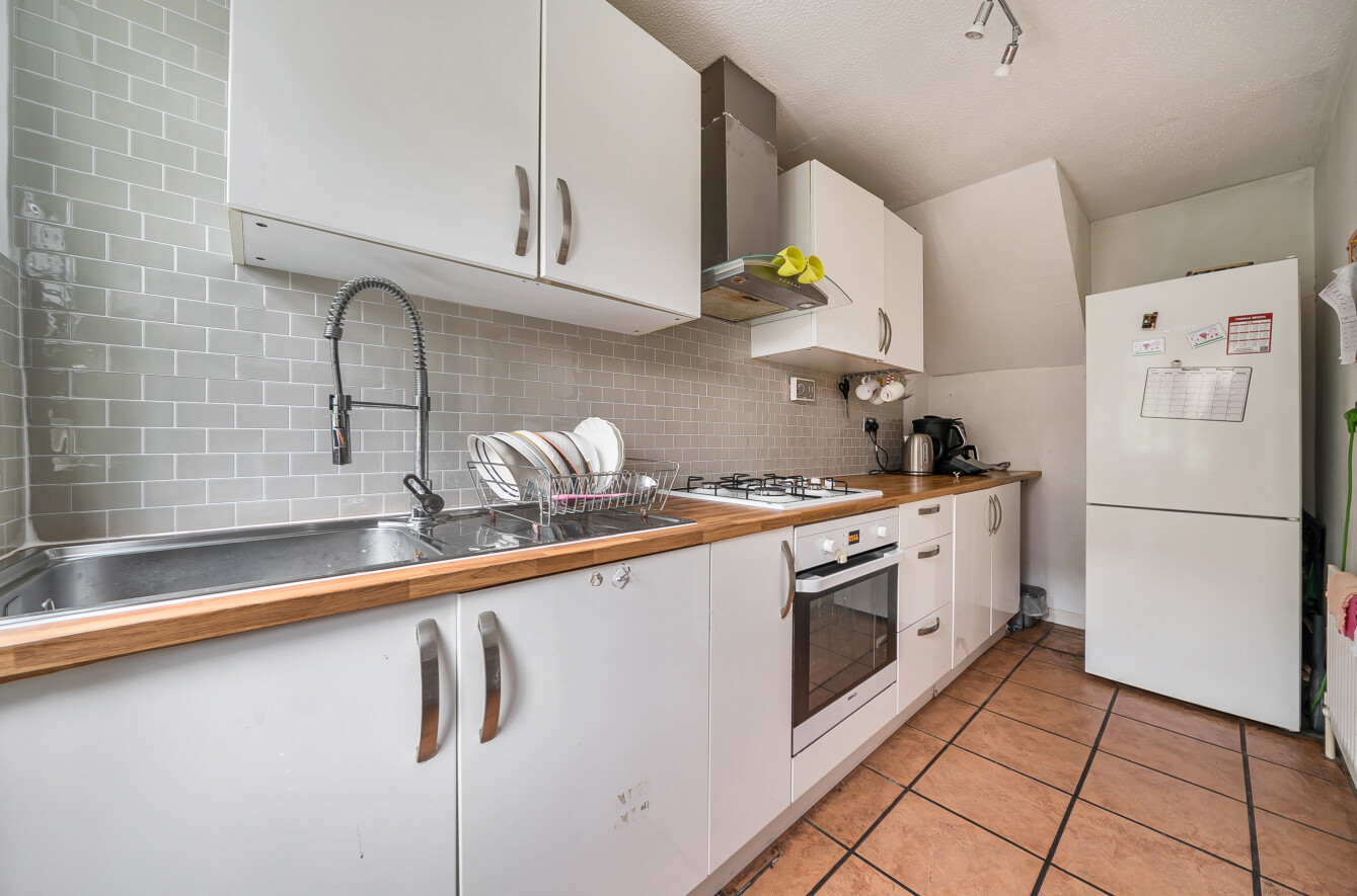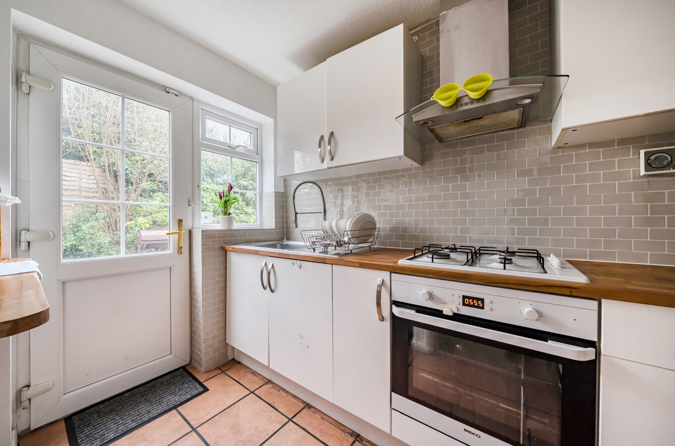 To the ground floor is a bright and spacious, double aspect living/dining room with a door out to the rear garden. The kitchen has a range of fitted wall and base units with space for appliances and a further door to the garden.