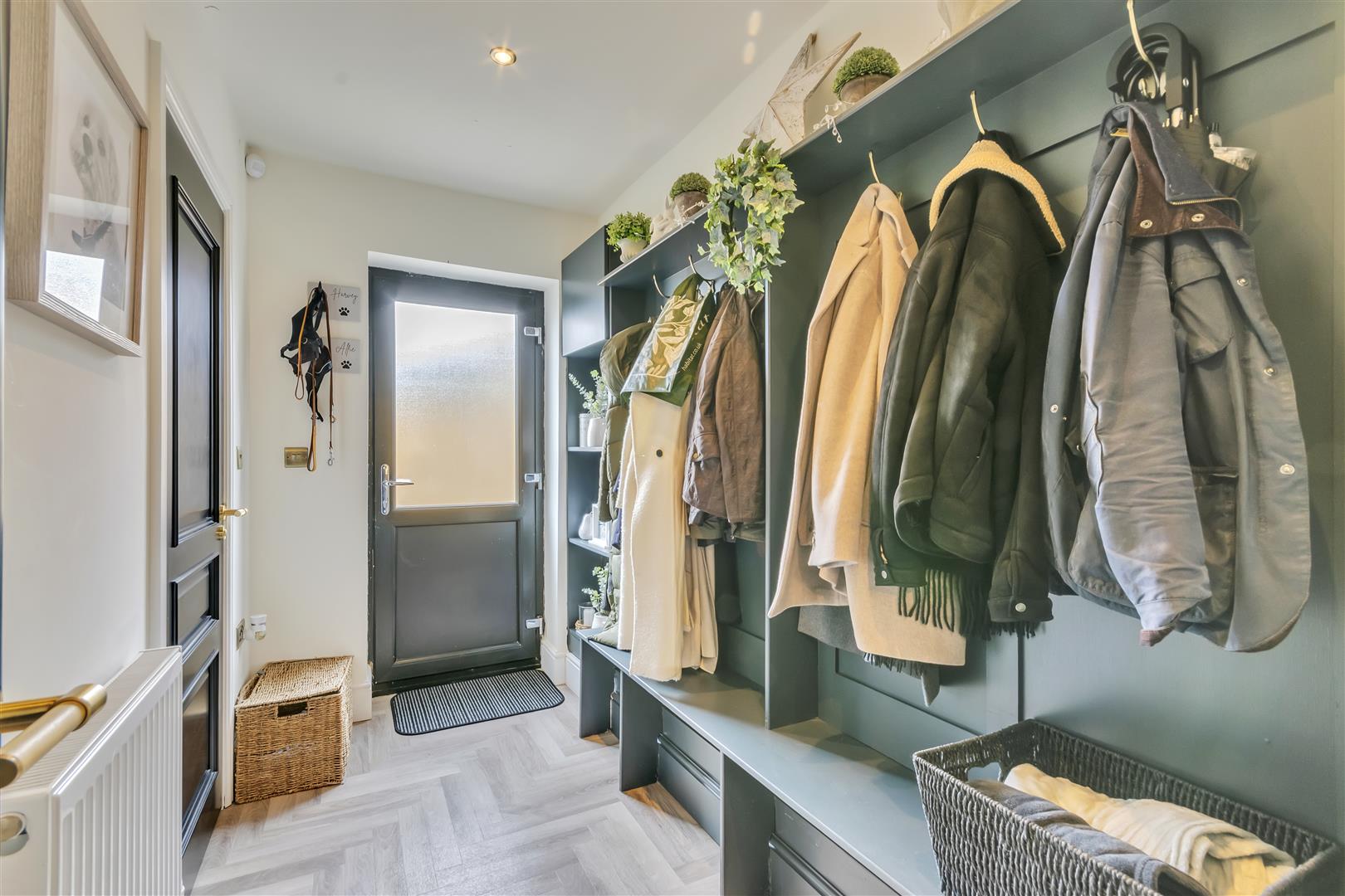 Rear Entrance Hall - 3.422 x 1.572 (11'2" x 5'1") - Side aspect door and window, range of coat hooks and shelving