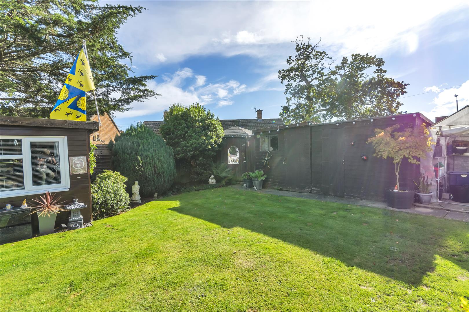 Enclosed Garden - Several outbuildings, shed 'bar 21' (5.346 x 3.772) with power and lighting, covered seating area, lawn,