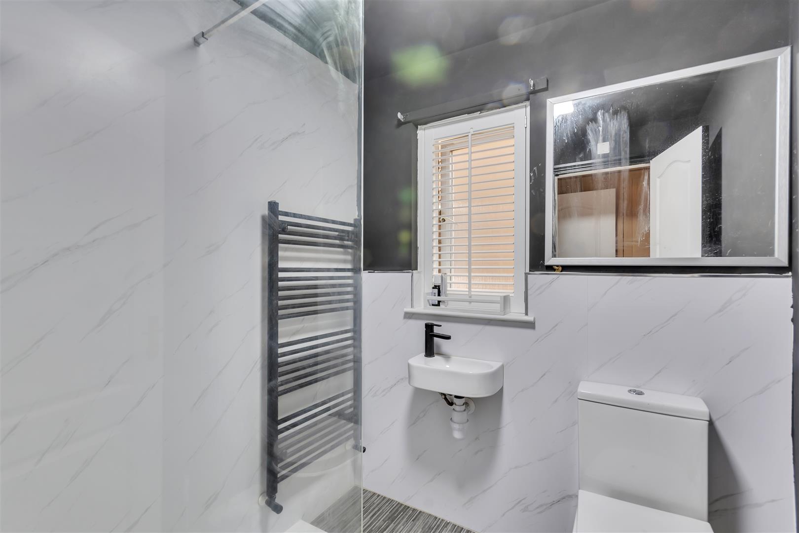 Ensuite - 1.77m x 1.68m (5'9" x 5'6") - The Ensuite comprises low level WC, wall mounted sink, shower cubical and heated towel rail. Extractor fan and lino flooring. Side aspect uPVC frosted window.