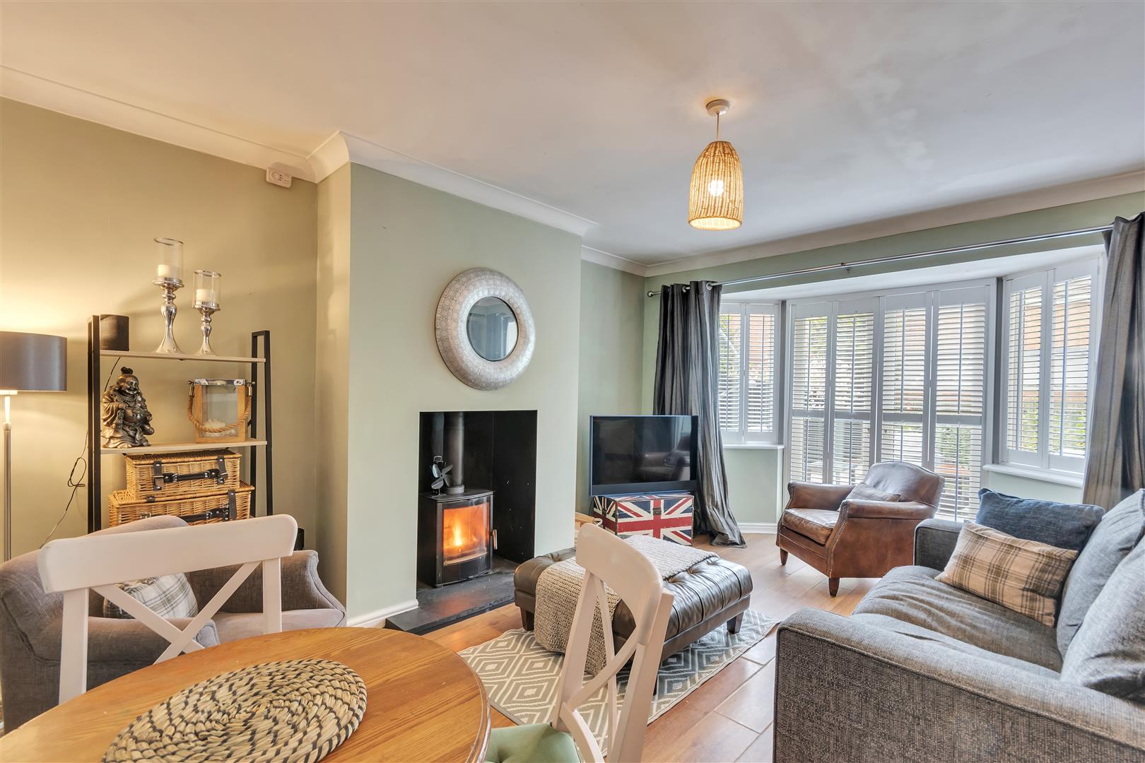 Kitchen/Dining Room - 6.83m x 5.03m (22'4" x 16'6") - The kitchen comprises a range of eye and base level units, 4 ring electric hob, double oven and a 1 1/2 sink and drainer with mixer tap over. Space for a fridge, recessed downlights and pendant lights. Tiled floor to the kitchen area and wood effect flooring to the dining area. Wood-burning fireplace and single panel radiator with thermostatic valve.