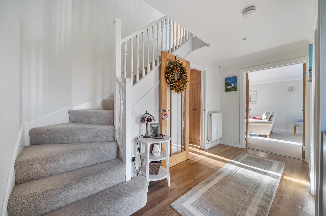 Reception Hall: - Stairs to first floor, coats cupboard, Karndean floor.