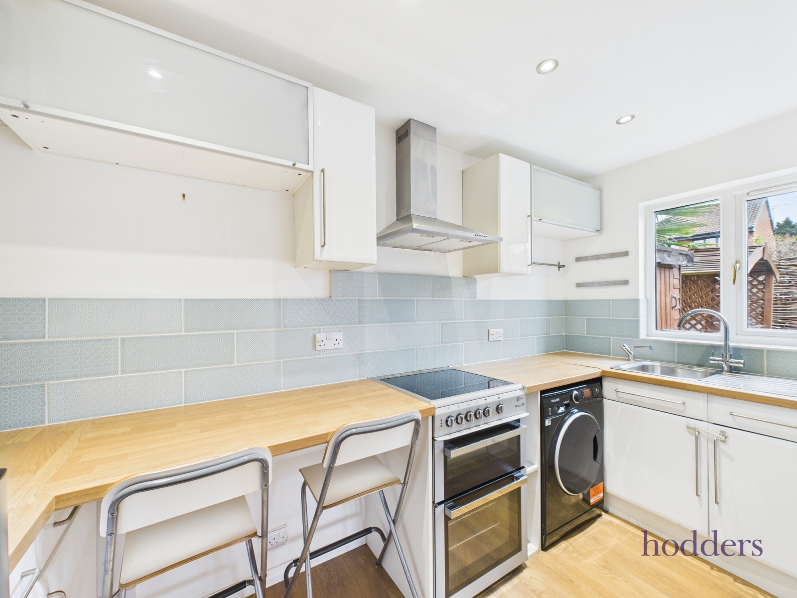 The spacious living room is filled with natural light thanks to the large double-glazed window, offering a relaxed setting for both everyday living and entertaining. Just off the lounge is the modern kitchen, which overlooks the gardenso you can enjoy the view while cooking. It's well-equipped with ample cupboard space, generous work surfaces, and room for all the essentials including a cooker, washing machine, and fridge/freezer.