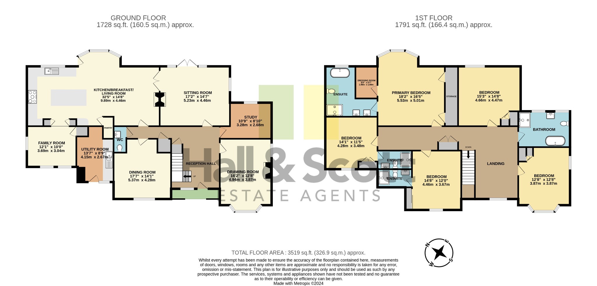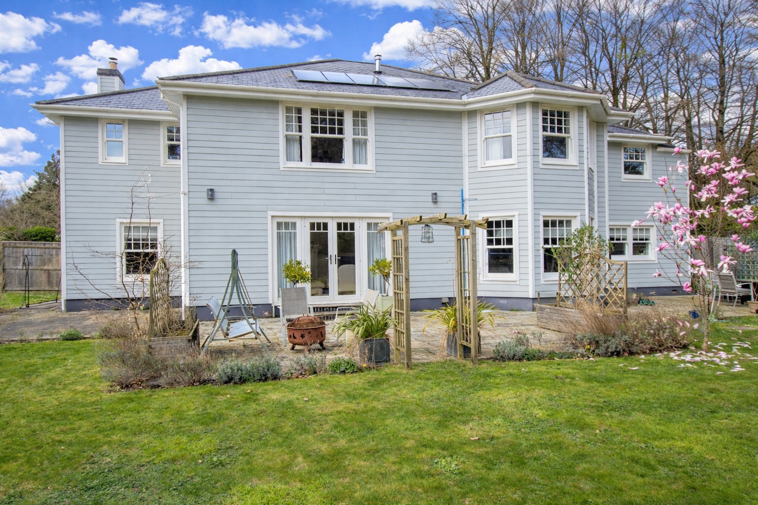 The luxury accommodation comprises; a delightful veranda porch which opens into a spacious hallway with hardwood flooring which leads to all the reception rooms. There is a drawing room with wood burning stove and adjacent office/study which overlooks the rear garden, a sitting room, which also enjoys a lovely aspect over the rear gardens with access to a private patio via French doors. There is a spacious hand made kitchen/breakfast/living room fitted with a range of units, wooden worktops, island unit, space for a double oven and fridge, ceramic sink unit, bay window with window seat offering a delightful outlook over the rear garden. This room shares a two way gas fire with the sitting room and opens into a family room. There is also a separate utility room and a cloakroom. On the first floor is an open galleried landing which is large enough for a further seating area. There are 5 bedrooms with three having en suites, the main bedroom is an impressive room with a bay window enjoying a lovely outlook over the rear garden, a large en suite with separate shower and freestanding roll top bath, there are also 2 walk-in wardrobes. Bedrooms 2 and 3 also have luxury en suites. There is also a spacious luxurious family bathroom suite. From the landing, a staircase giving access to the roof space.