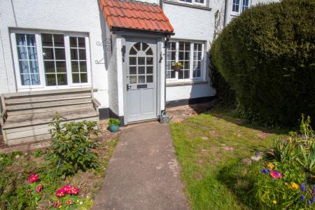 Entering the village from Ottery St Mary, go past the garage, continue along, go past the war memorial and the cottage will be on your right.