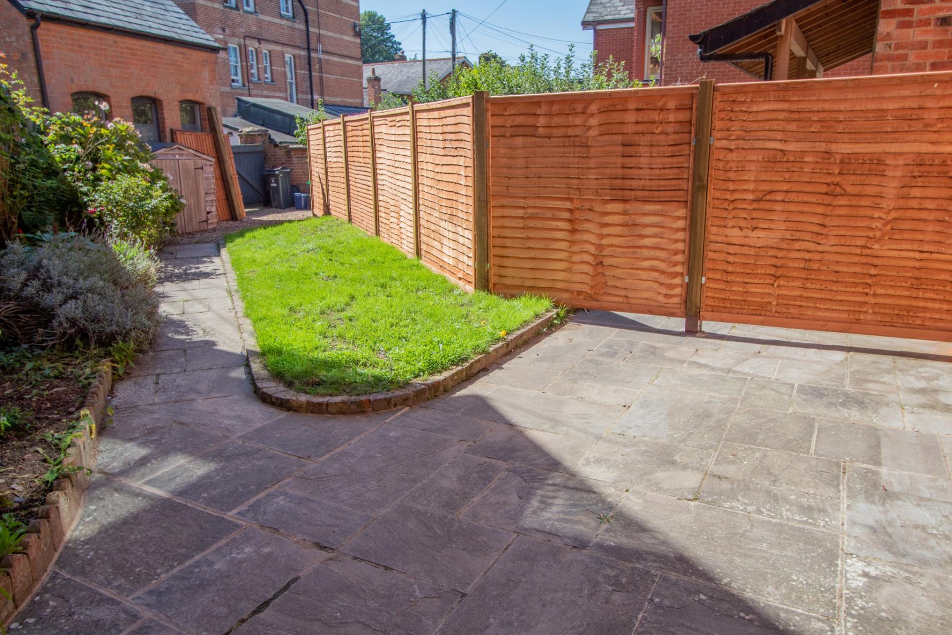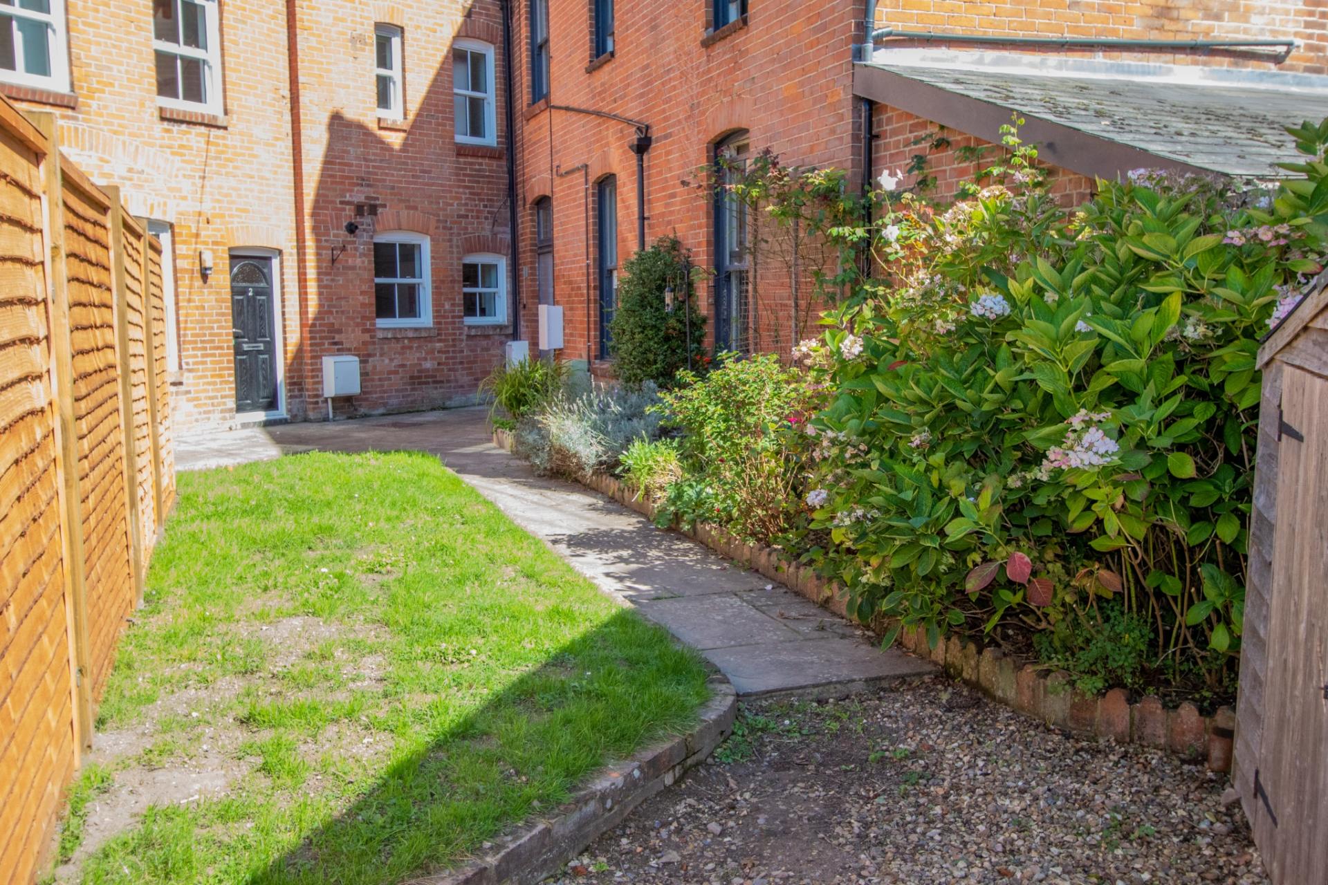 Level location near the town centre with garden and parking.