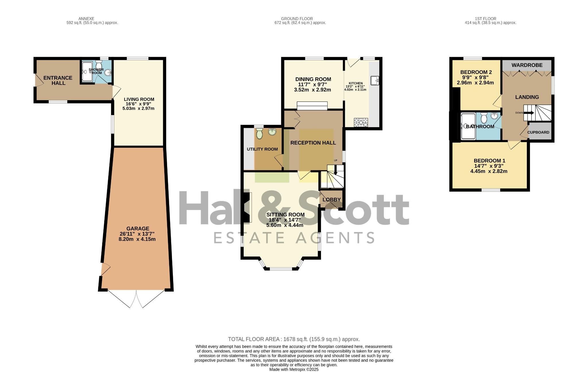 The property is approached via the estate private drive, there are wooden electric gates, leading onto the driveway offering ample parking and leads to the large garage (8.20m x 4.15m max) light power and double doors to the front. The gardens are beautifully landscaped and well stocked, laid mainly to lawn, interspersed with pathways, low brick walls and well stocked borders, there is a pergola over a terrace offering views over the estates apple orchards. Shared private drainage.