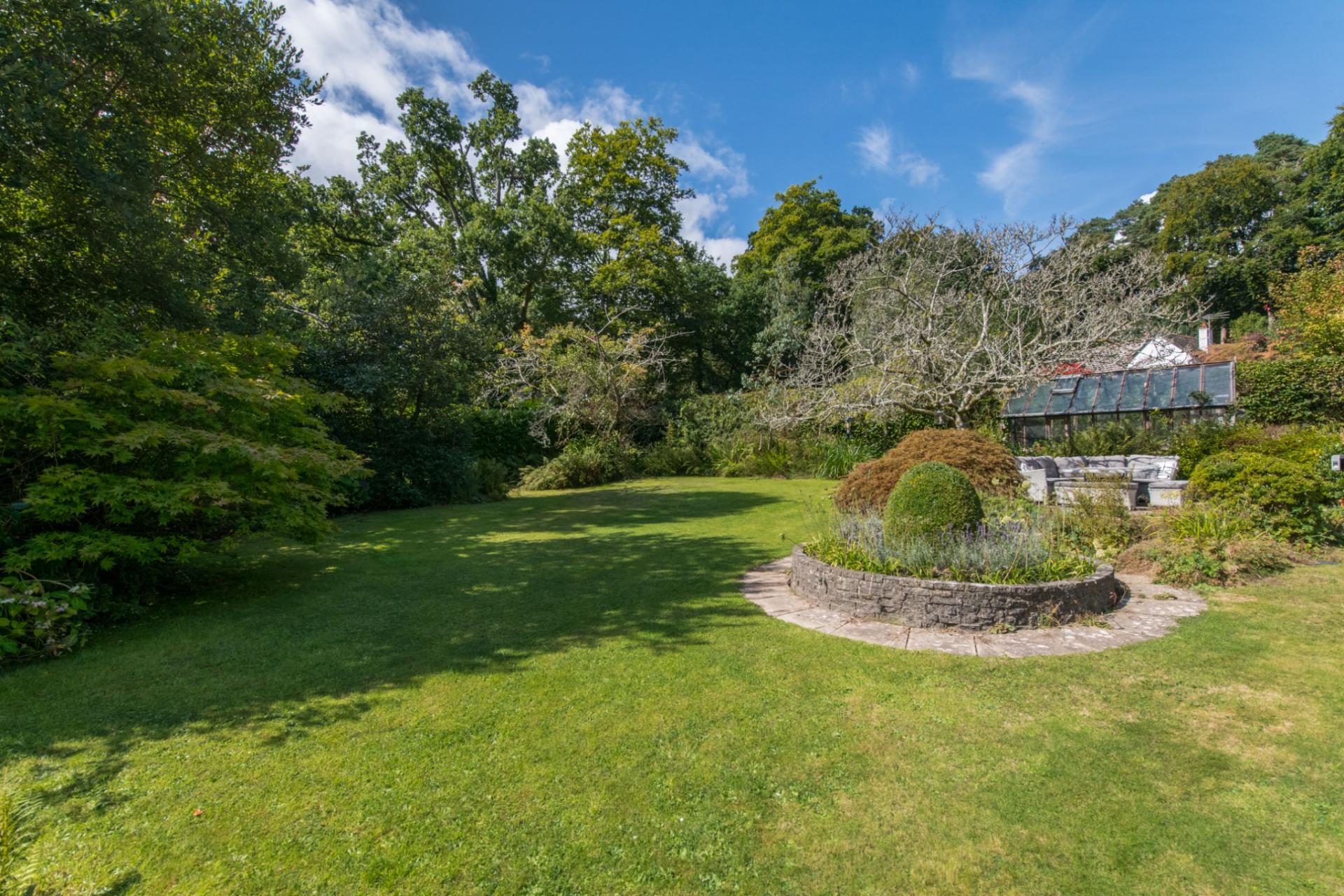 The property is located on a charming mature plot and is approached via wrought iron gates, with a long driveway providing parking and leading up to the double garage (5.51m x 6.38m) which has dual up and over doors light and power. The gardens are another attractive feature of the property, being a good size, offering large areas of lawn with many mature plants, shrubs, patio areas, greenhouse and potting shed.