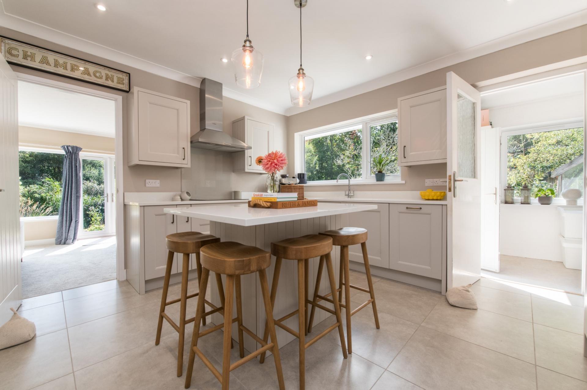 Adaptable 3-bedroom detached chalet bungalow. Renovated and modernised, large garden. Air Source Heating.