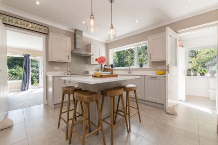 The accommodation comprises: entrance hallway with parquet flooring, refitted kitchen with a range of hand-painted wall and base units, quartz worktops, built-in double oven, hob with extractor hood over, integrated dishwasher and fridge/freezer, island unit with seating area and door leading into the utility room. The lounge/dining room is a bright dual-aspect room offering a lovely aspect over the gardens with French doors onto the garden. There are 4 bedrooms; the master has a range of built-in mirrored door wardrobes, engineered oak flooring and a refitted en-suite with fully tiled walls and flooring. Bedroom 2 also has built-in wardrobes and bedroom 3 also has parquet flooring. There is also a refitted family bathroom suite with tiled flooring. The property also has double-glazed windows and gas central heating.
