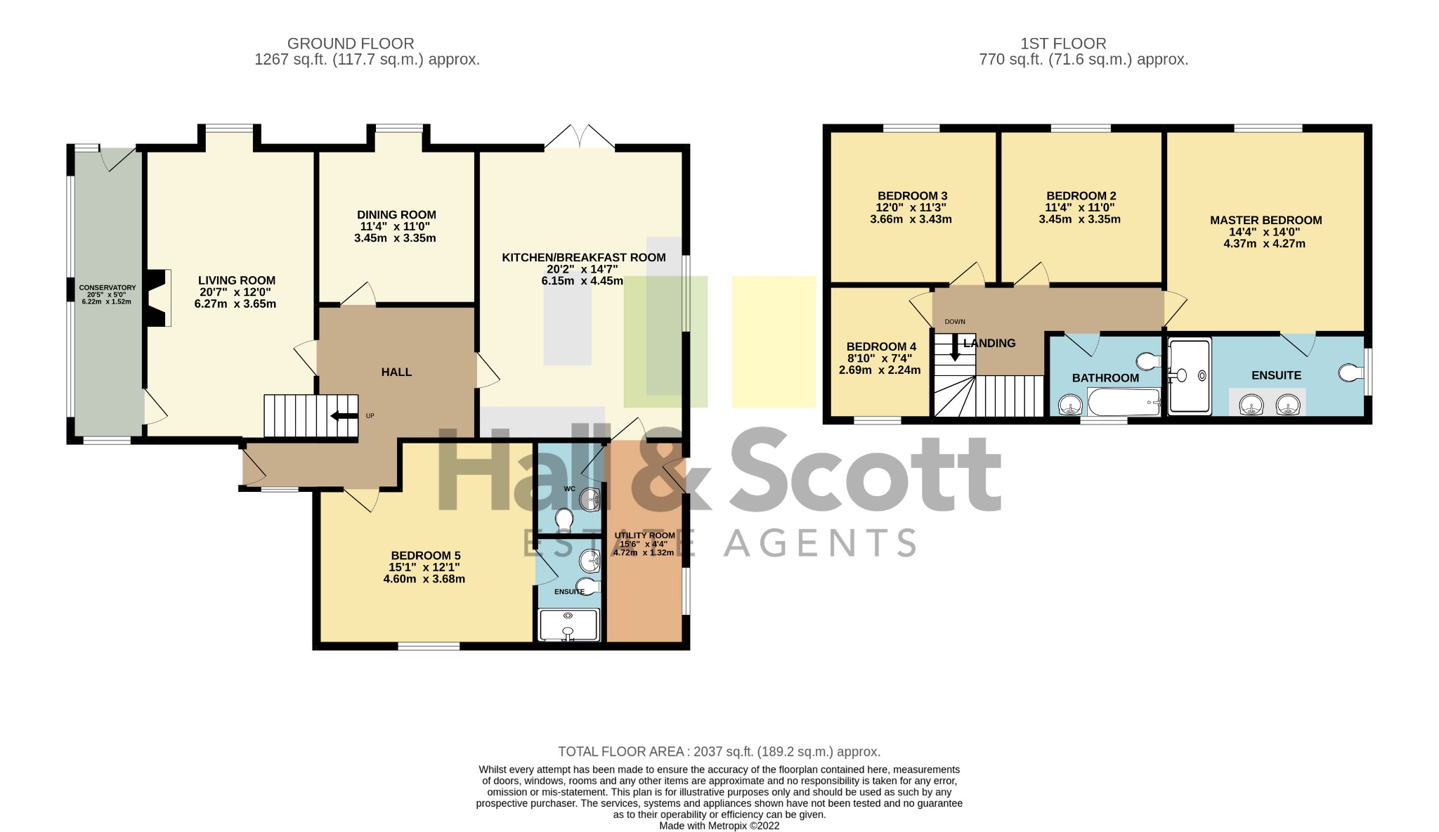 The accommodation comprises; spacious entrance hall, bedroom 5/study with ensuite shower, living room with wood burner, conservatory, dining room, kitchen breakfast room, utility room and cloakroom. To the first floor is the master bedroom with en-suite shower, three further bedrooms and a separate family bathroom suite. The property benefits from gas central heating.