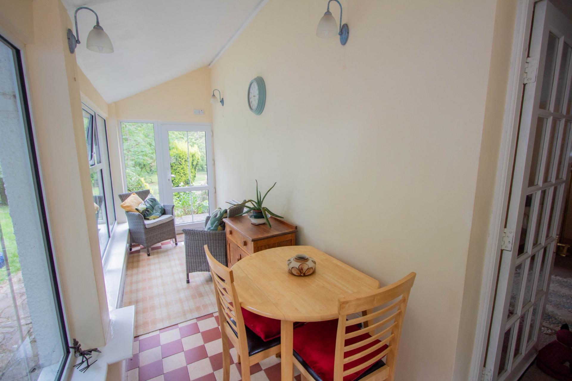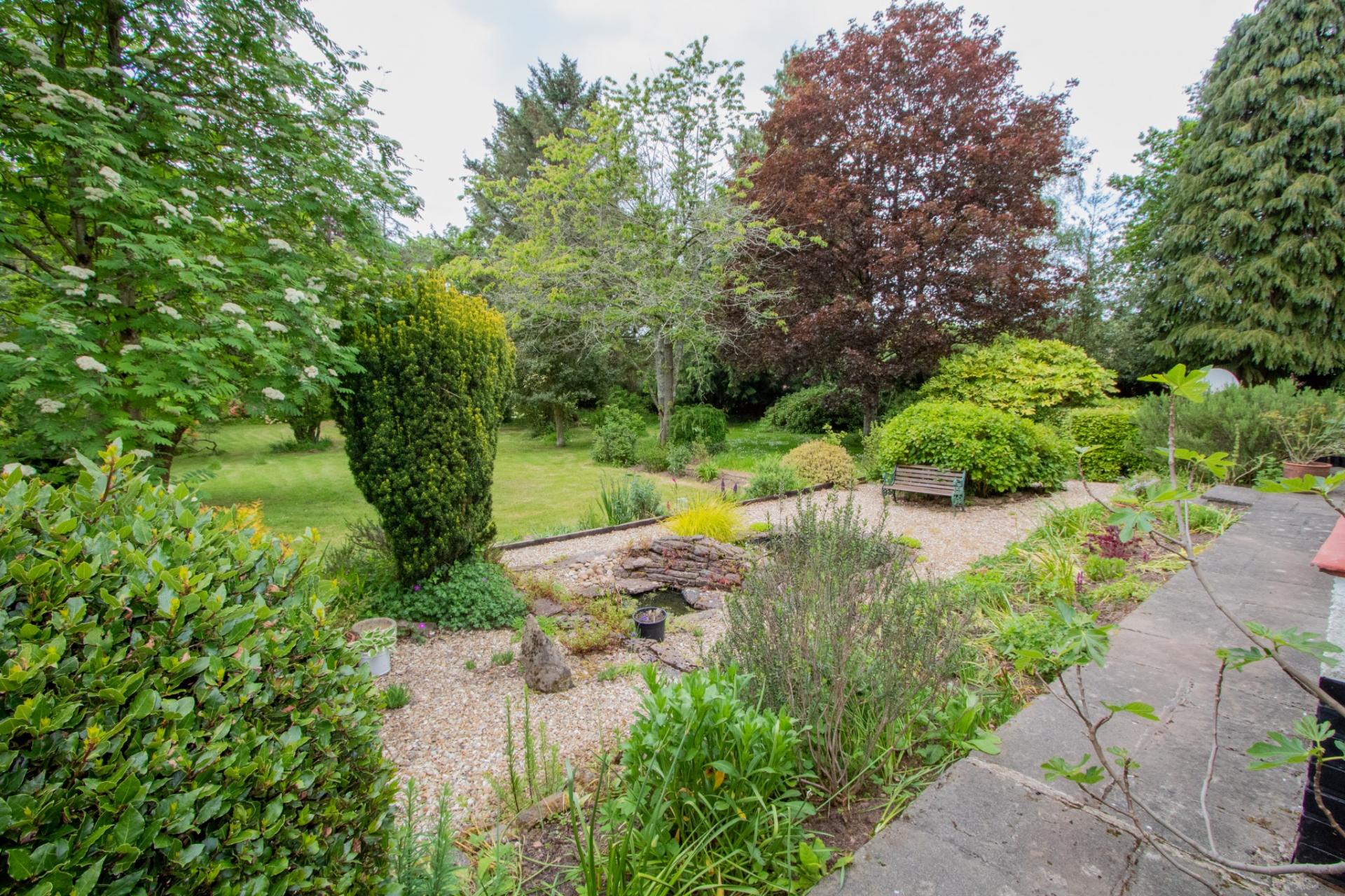 Outside - The property enjoys a large plot of just over 1 acre of mature gardens which surrounds the property on all sides. Separate double garage at 17 10 x 16 9 with an office over at 17 10 x 15 10 light and power and two electric doors. The garden has a fruit garden, vegetable garden and greenhouse. To the rear of the property the garden is mostly laid to lawn and interspersed with a variety of mature trees and shrubs, full width patio with ornamental ponds and flowering borders. To the front of the property is a gated entrance, large gravel driveway providing parking for several vehicles, caravan or boat if required.