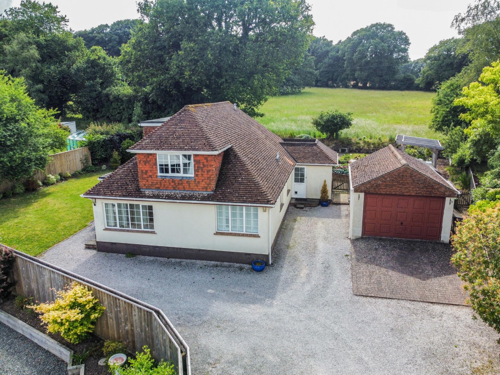 A fantastic opportunity to purchase this deceptively spacious three-bedroom detached chalet bungalow, peacefully tucked away in a private location on the edge of the highly sought-after woodland village of West Hill.