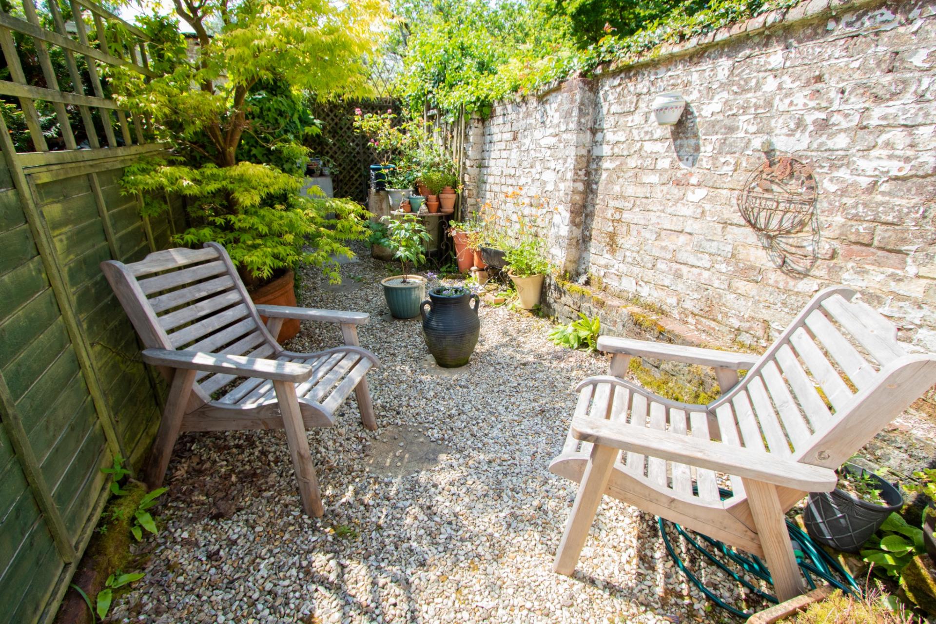 2-bedroom maisonette, private garden and parking for 2 cars. No chain.