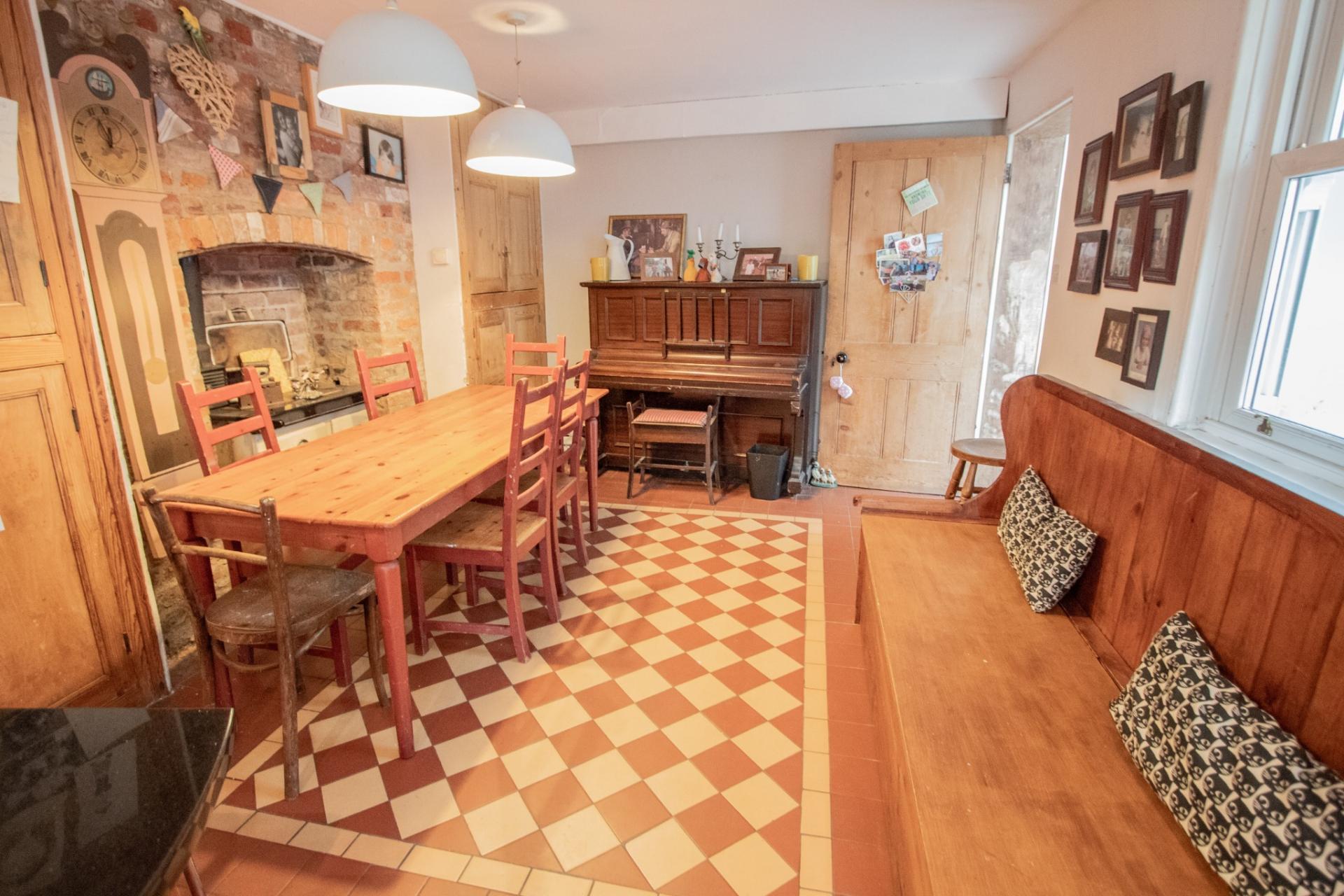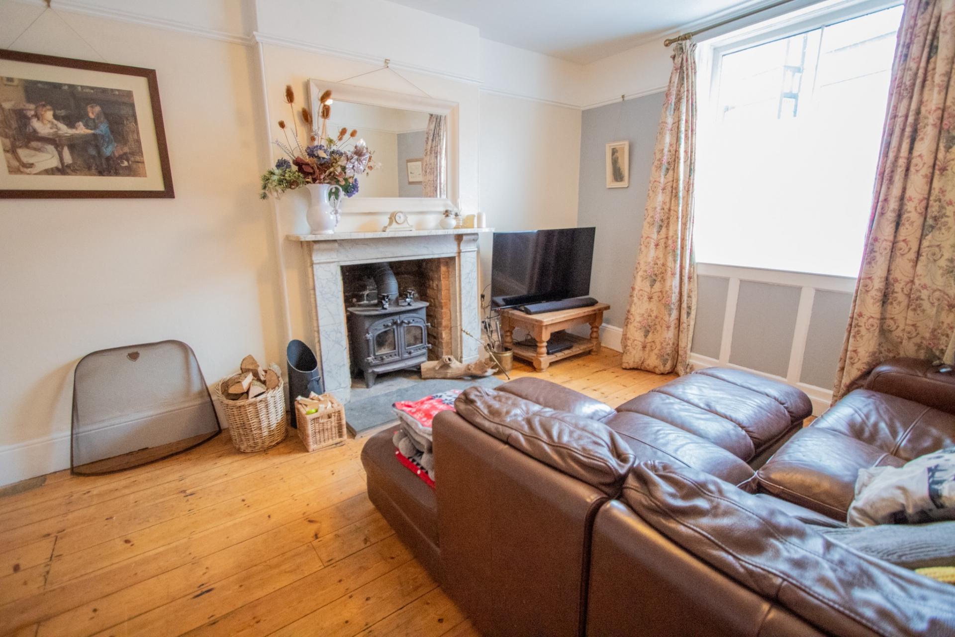 The accommodation has a lot of character and comprises: a welcoming entrance hallway with attractive tiled flooring which gives access to a living room, with feature marble fireplace and wood burner, exposed wooden flooring and access to a large walk-in cupboard. There is a further separate reception room with fireplace, timber floor and built-in cupboards to one recess. There is an orangery with roof lantern and access to the rear garden. The farmhouse-style kitchen/dining room is a good-sized room with tiled flooring, a feature exposed brick fireplace, a range of wooden wall and base units, granite worktop surfaces and french doors into the rear garden. There is also a utility room which leads to the cloakroom. On the first floor there are 4 good-sized bedrooms. The master has a large walk-in wardrobe, bedroom 2, has an ornamental fireplace and exposed timber floor. The family bathroom suite has a clawed feet bath on a raised plinth with a shower over it.