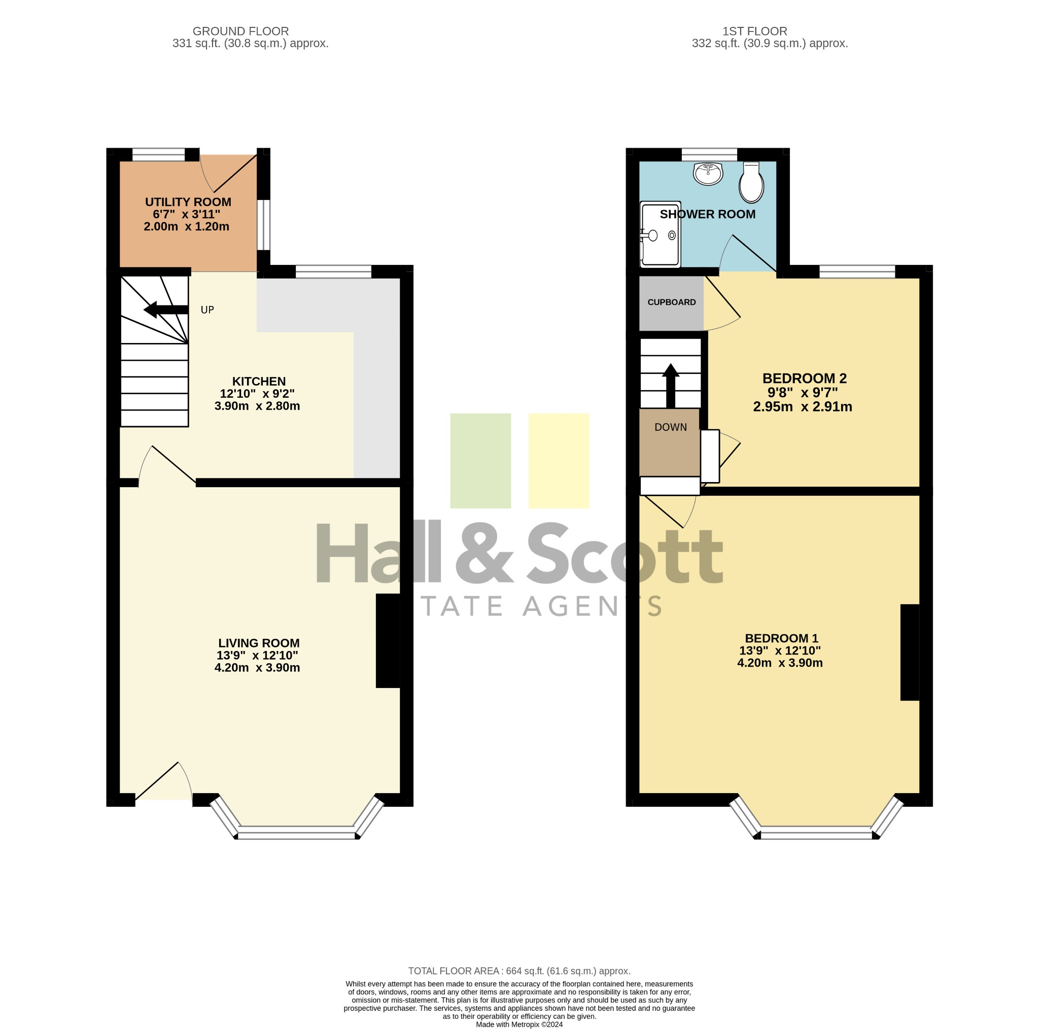 The ground floor features a spacious lounge, enhanced by a beautiful bay window that fills the room with natural light, and a well-appointed kitchen with an adjoining utility space. Upstairs, you'll find two generously sized bedrooms, with the primary bedroom boasting an elegant bay window overlooking the front. The shower room is conveniently accessible from the second bedroom. The property also benefits from all new double glazing fitted at the rear.
