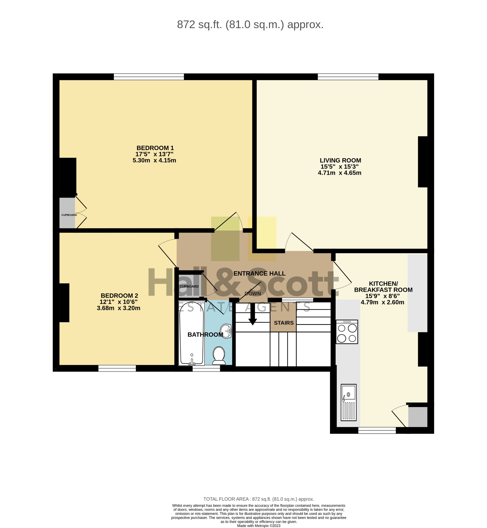 The apartment is located on the top floor above the Hall and Scott Office.