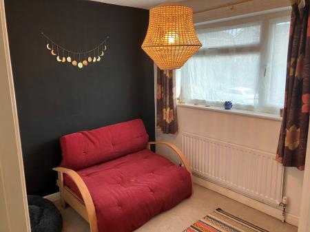 To the front of the property is a double-width driveway with a small lawned garden to the side with shrubs and a single integral garage. The rear garden is level, secluded and well fenced to the boundaries. The garden is mainly laid to lawn with a patio area, flowering borders with mature Clematis to the corner. The cabin (2.2 wide by 3.4 long) is fully insulated with windows and electricity connected and can be used as a work from home room.