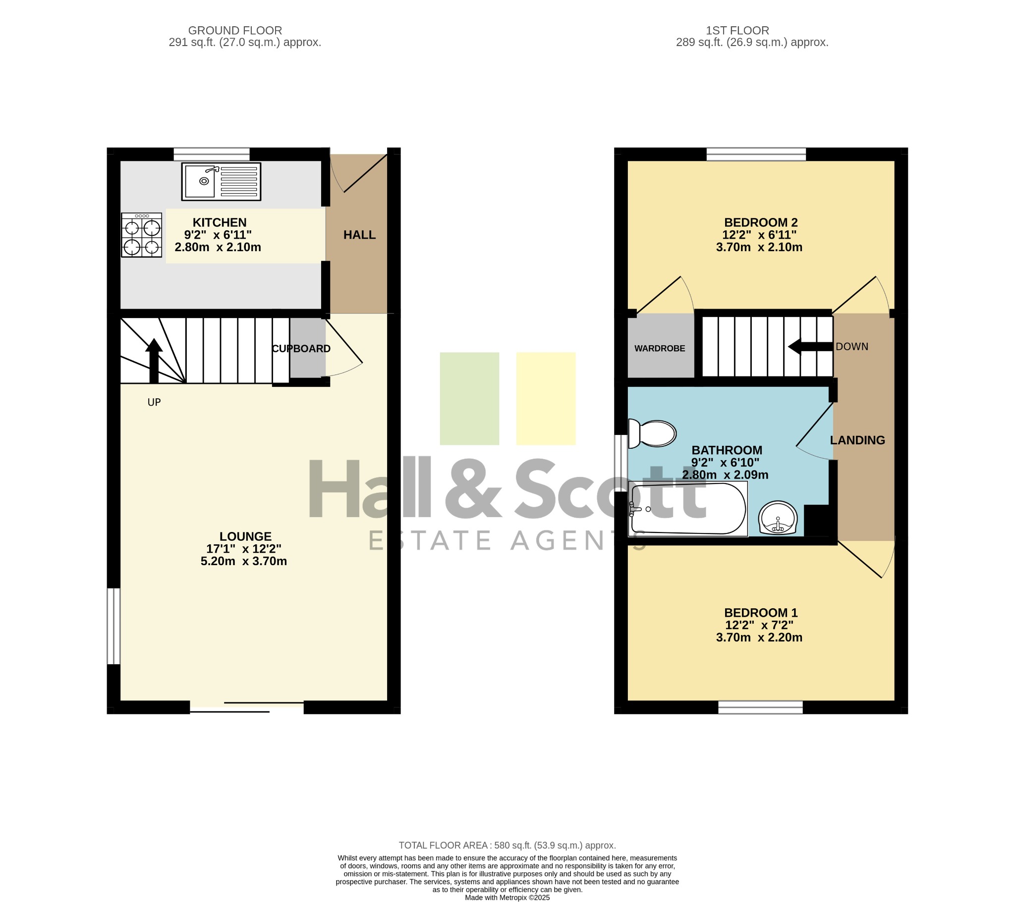 The accommodation comprises an entrance hall, kitchen and good-sized lounge/dining room. Upstairs are two good-sized bedrooms and a modern bathroom.