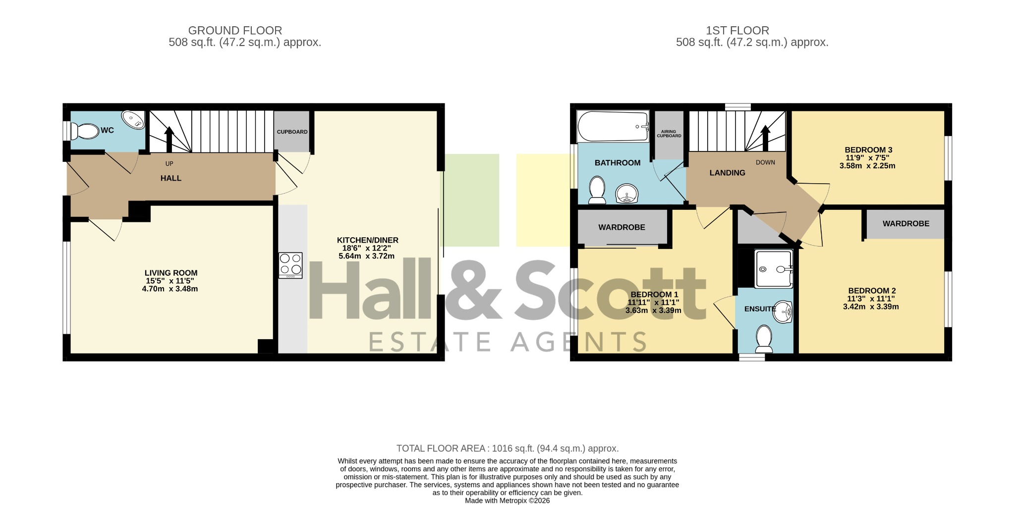 The property comprises an entrance hall, cloakroom, living room and a good-sized kitchen/diner with patio doors onto the garden.