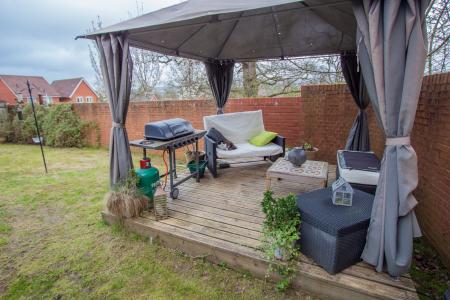 To the rear of the property is a driveway offering parking and leads to a single garage up and over door light and power. The front garden has shrubs, lawn and a pathway to the property. To the side is an enclosed lawned garden with a timber-decked patio.