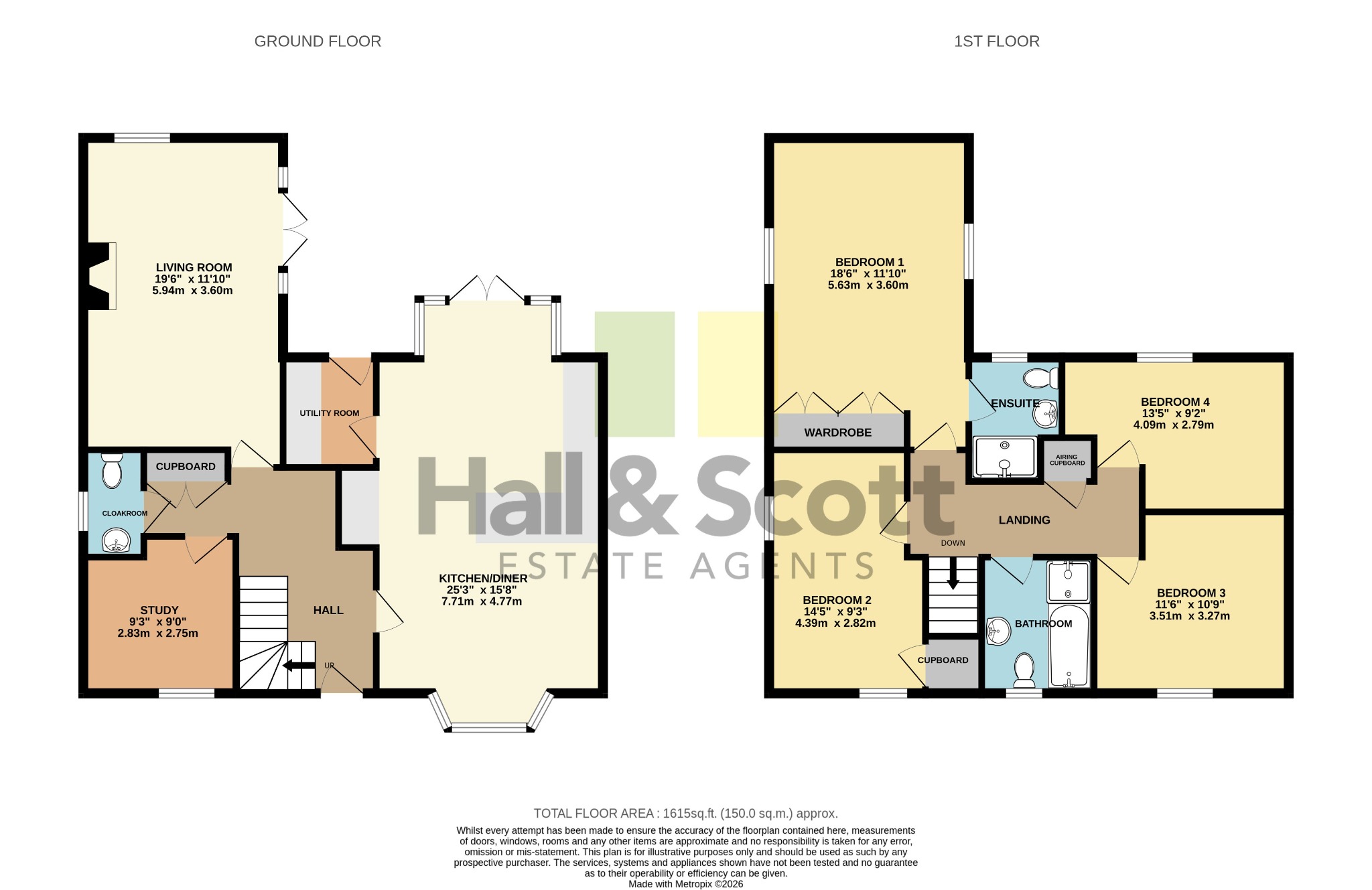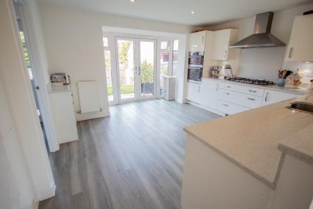 The beautifully presented accommodation comprises: entrance hallway, cloakroom, large dual-aspect kitchen/dining room, a lovely bright room with a range of wall and base units, quartz worktop surfaces, integrated dishwasher, fridge/freezer, built-in oven and hob with extractor over, boiling hot water tap and French doors into the rear garden. There is also a utility room with units and quartz worktops. There is a dual-aspect living room, with bow window and French doors into the rear garden and there is a study completing the ground floor. On the first floor there are 4 double bedrooms, the master with built-in wardrobes and an en-suite shower room and there is a family bathroom suite which also has a separate shower cubicle.