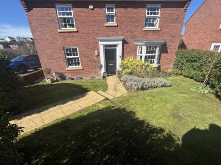 To the front there are 2 lawned gardens with a pathway leading to the property, shrubs and hedge to the front. There is a garage (5.39m x 2.99m) up and over door with light, power and personal door to the rear garden and parking at the front of the garage, an EV charging point. To the rear of the property is a paved patio, lawned garden and shrubs.