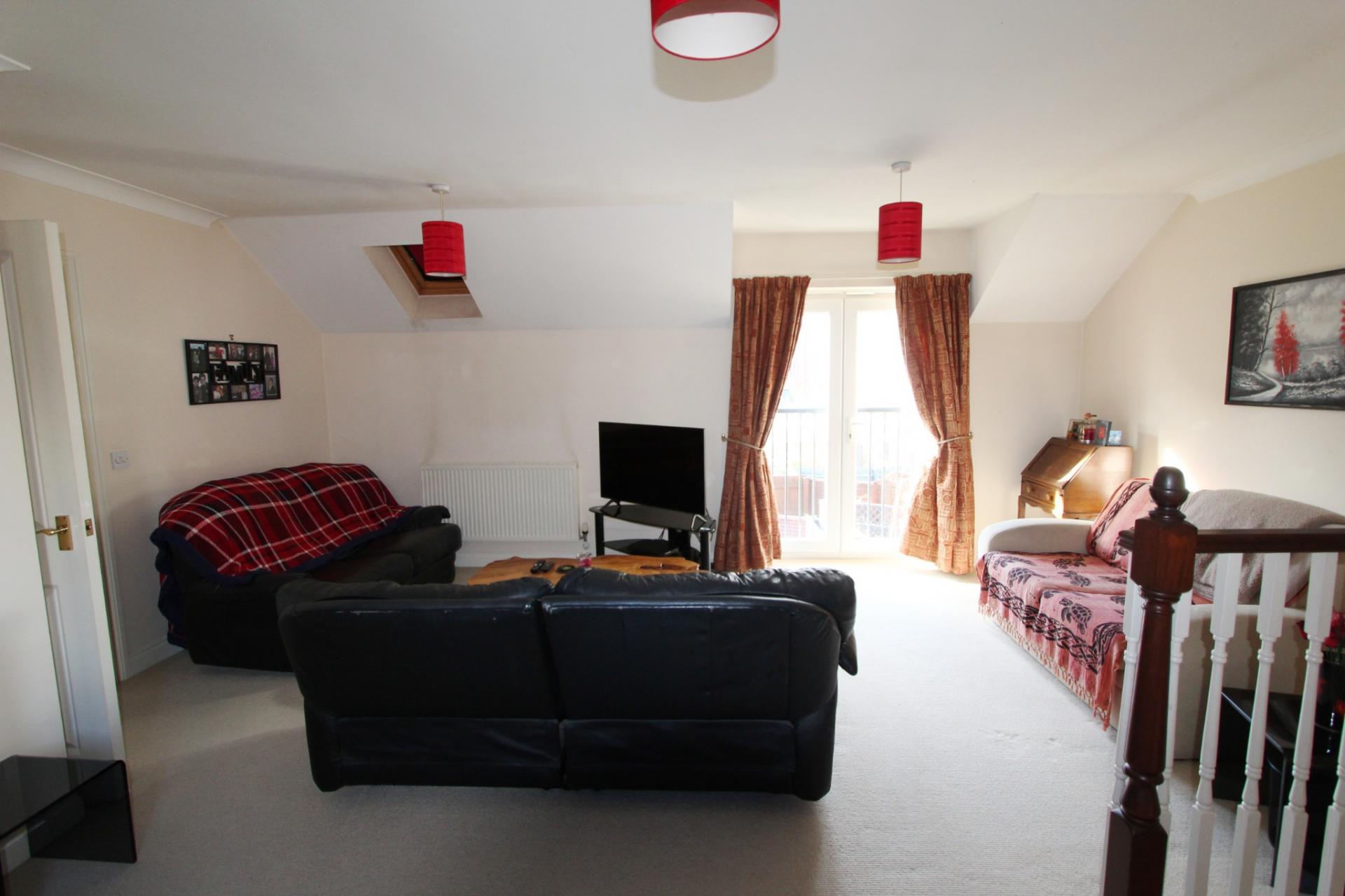 To the ground floor is an entrance hall, cloakroom and large kitchen/breakfast room with double doors leading out to the garden. From the hallway there are stairs leading to the first floor where there is a lounge/diner with Juliet balcony, master bedroom with ensuite, second bedroom and bathroom.