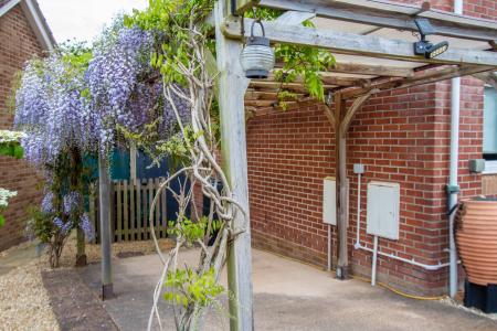 To the front of the property is a gravelled flower bed, carport to the side with pedestrian gate to the rear garden. Additional driveway for 2 cars (the second drive from the house). The rear garden has been designed with ease of maintenance in mind, paved patio, artificial lawn, shrubs, summer house and 2nd patio.