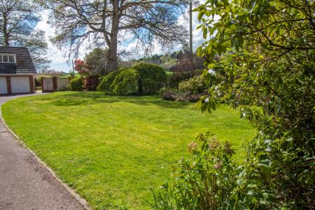 Another lovely feature is the plot the property sits on, approached via a gate and long tarmac driveway offering ample parking, there is double garage with twin opening doors (5.07m x 5.04m) which has light and power and a personal door into the property. To each side of the driveway there are large sweeping lawns which are well stocked with an abundance of shrubs and trees. There is access to the side leading to the rear garden where you can sit and enjoy the stunning outlook. There is a large paved patio, large lawned gardens and a further patio. At the far end of the garden is a small woodland copse. Private drainage