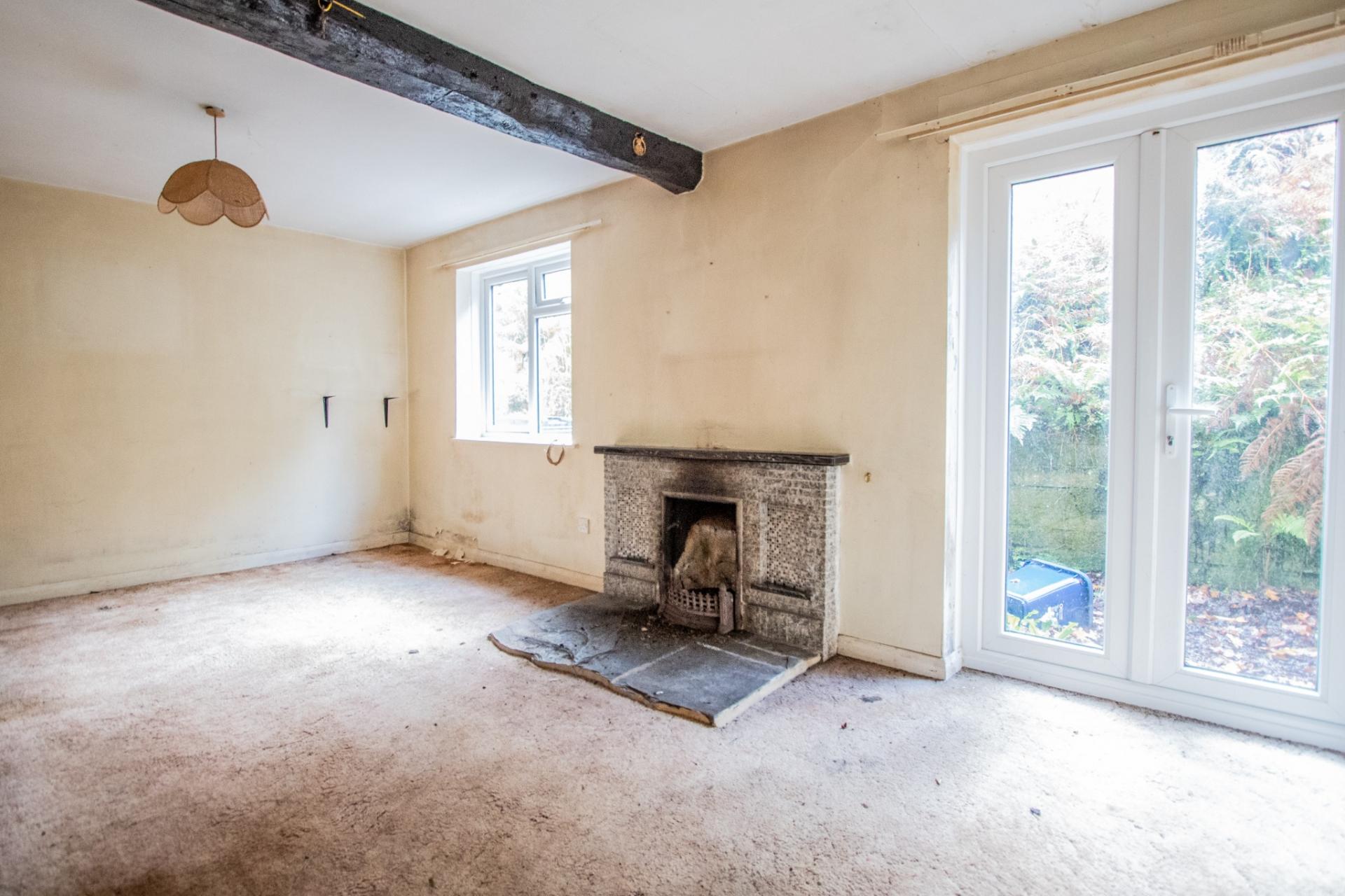 Requiring renovation, the accommodation comprises an entrance hallway, living room, and kitchen on the ground floor. On the first floor there are three bedrooms and a bathroom.