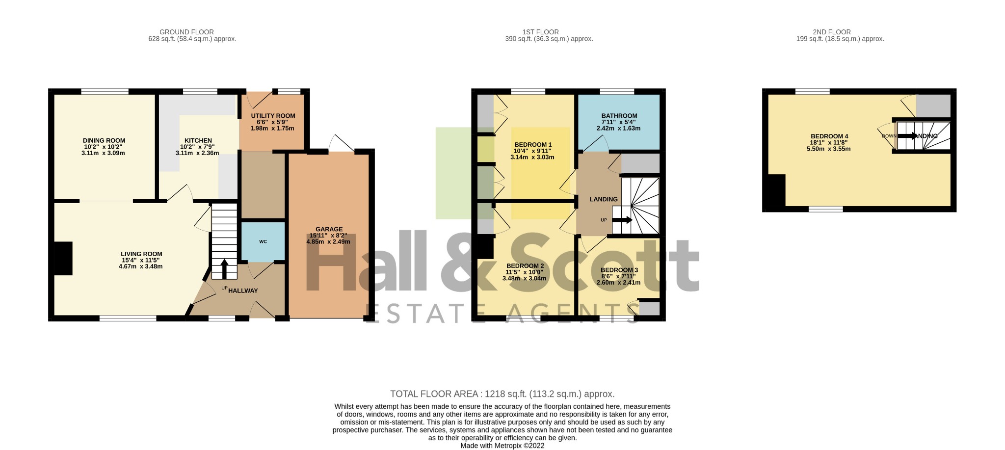 The accommodation comprises: entrance hallway, cloakroom, lounge which opens into the dining room, kitchen with a range of wall and base units, worktop surfaces and a utility room. On the first floor there are three bedrooms and a bathroom suite, with a staircase rising to a further bedroom.