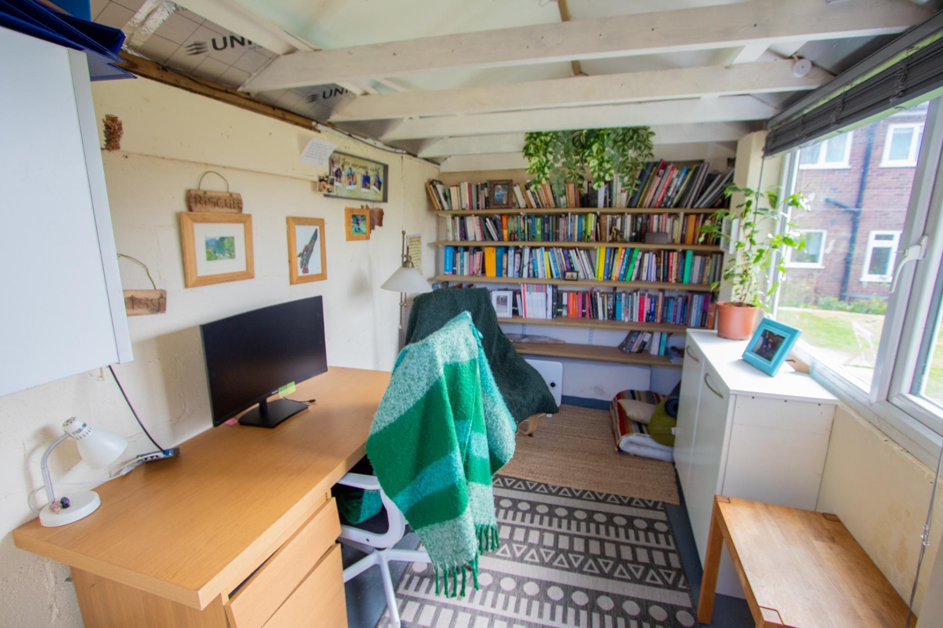 The front garden is low maintenance with a driveway to the side and garage. The rear garden features a patio with the rest of the garden laid to lawn with flowerbeds. There is an outside office and the plot is well fenced to the boundaries.