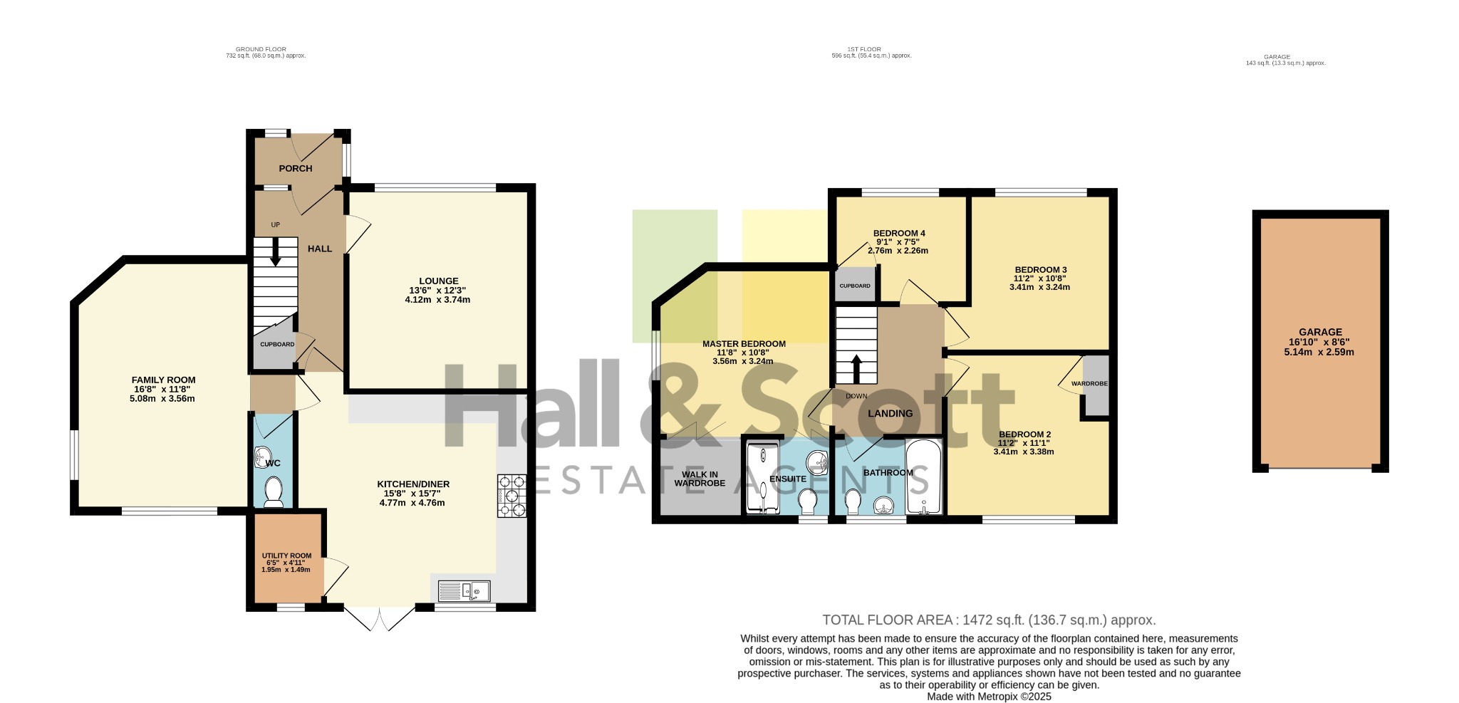 Upstairs, the property offers three generous double bedrooms and a good-sized single. The principal bedroom benefits from a modern en-suite shower room and a walk-in wardrobe. A contemporary family bathroom completes the first-floor accommodation.